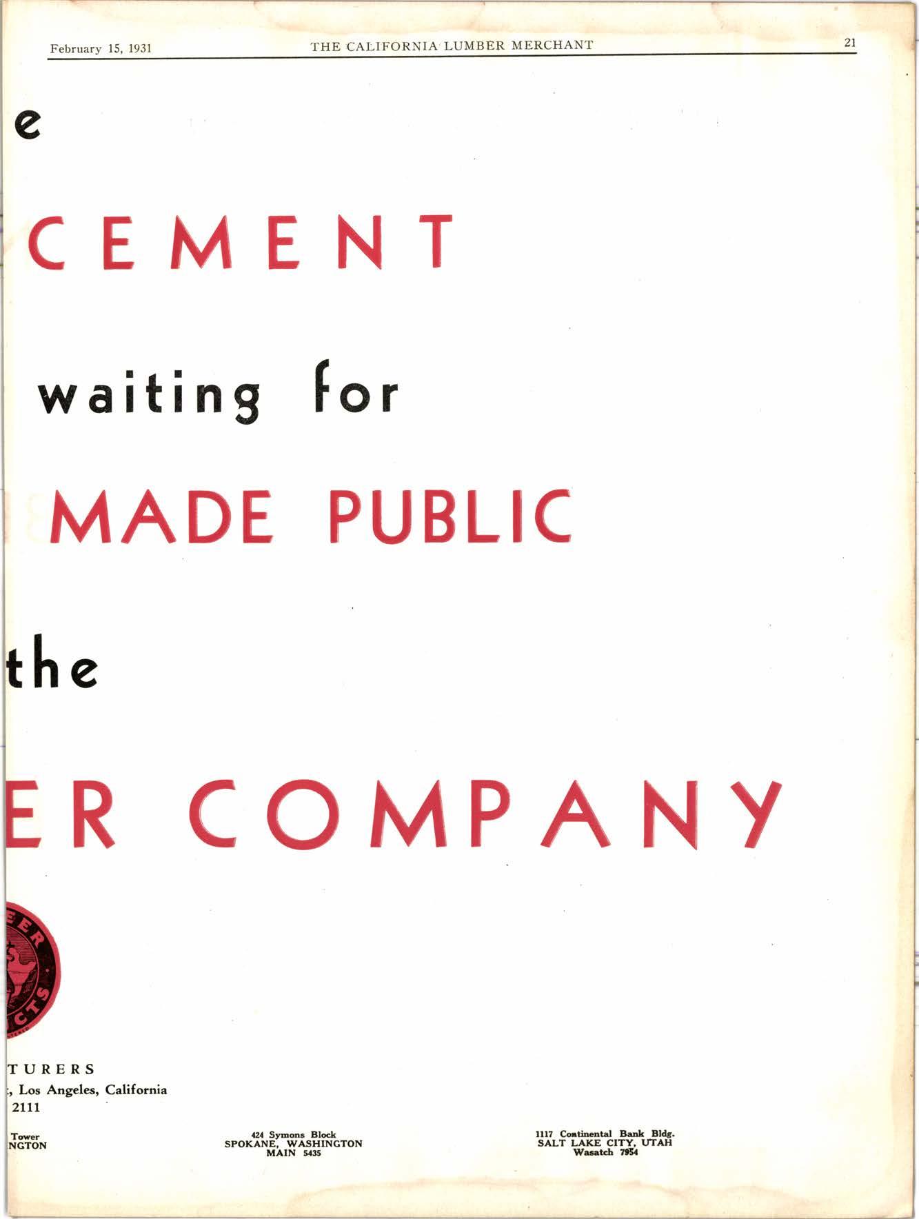 THE CALIFORNIA LUMBER MERCHANT February 15, 1931