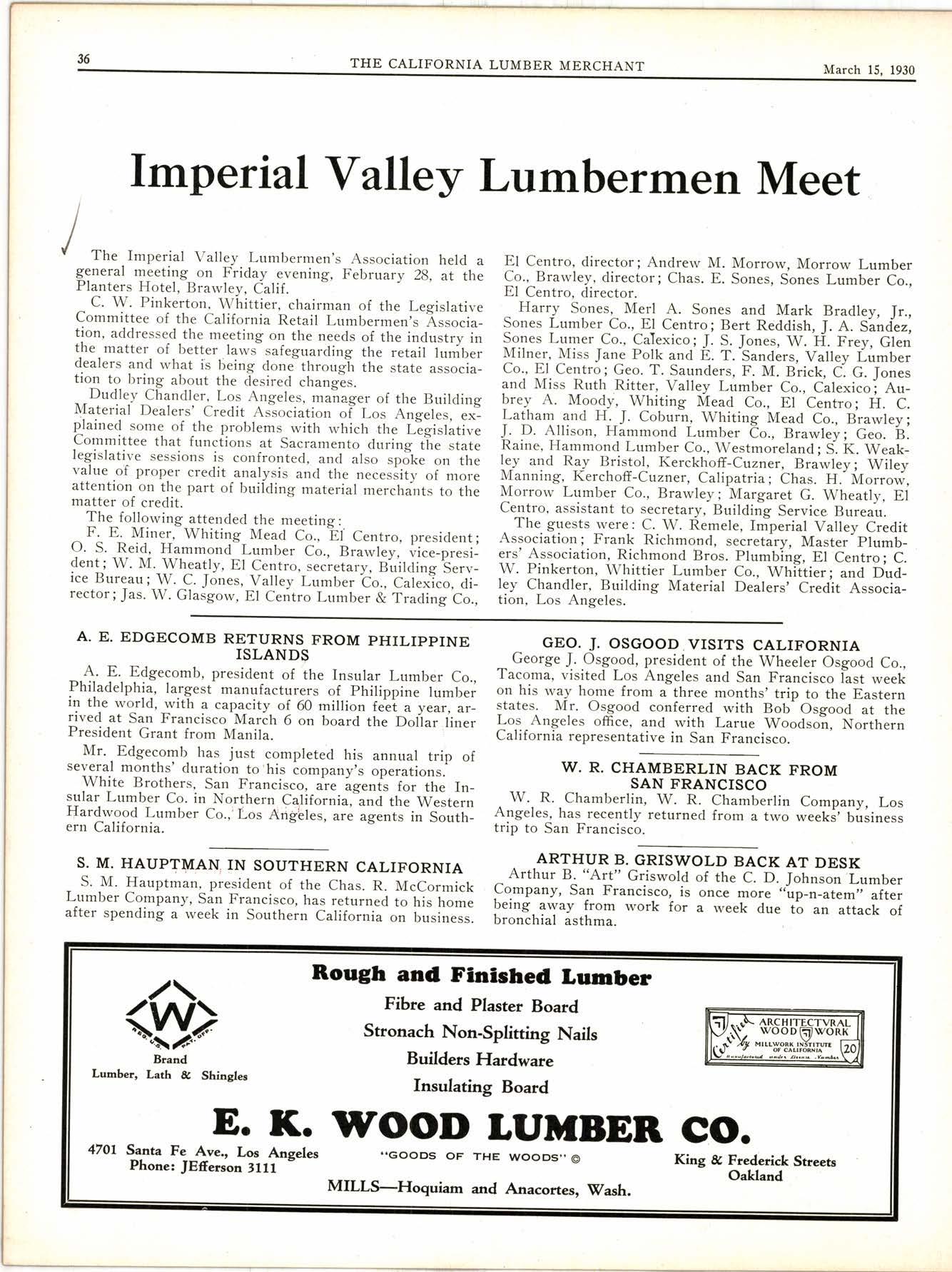 Mr.Edgecomb has just completed his annual trip of several months' duration to'his iompany's operations.' White Broth_ers, San Franci..o, u'.. igents for the In_ sular Lumber Co. in Northern California,"and the W..t"." Hardwood Lumber Co.,'Los Angbles, are agents in S;;ih- ern California.