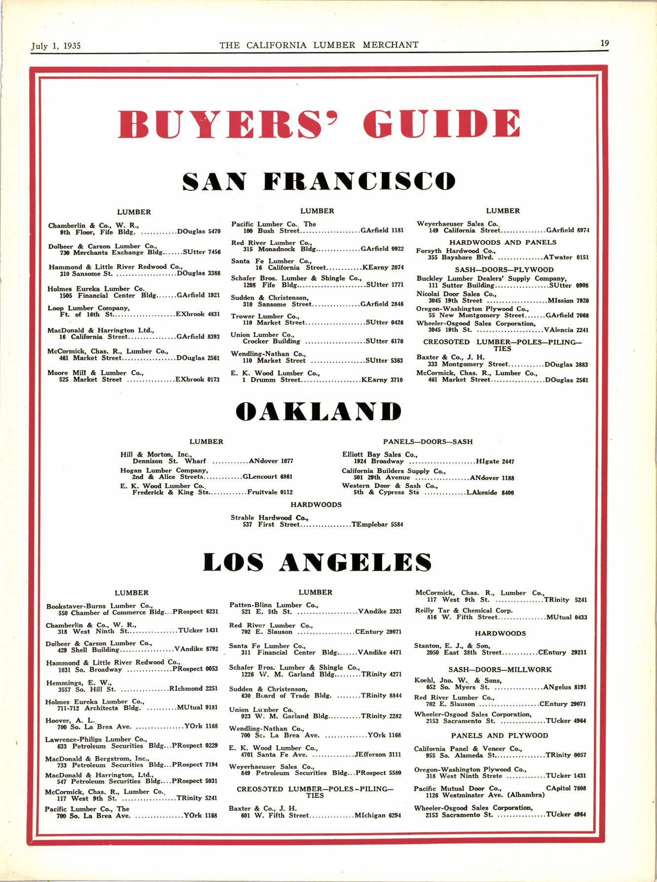 Special articles upn""r,l* ,r anr, issue are "Regarding Redwood" by R. F. Hammatt; "Douglas Fir in California" by Walter C. Ball; "History of the Wholesale Market in Southern California" by T. B. Lawrence; "California Pine Outlook" by E. P. Ivory; "The Retail Lumberman and His Advertising" by Adeline M. Conner; "The Builder's Opportunity" by David Woodhead; "San Francisco Hardwood Market" by C. H. White; "Advertising" by Emil Brisacher; "College Training for the Millwork Business" by Prof. Emanuel Fritz and "The Manufacture of Plywood" by J. M. Langton.