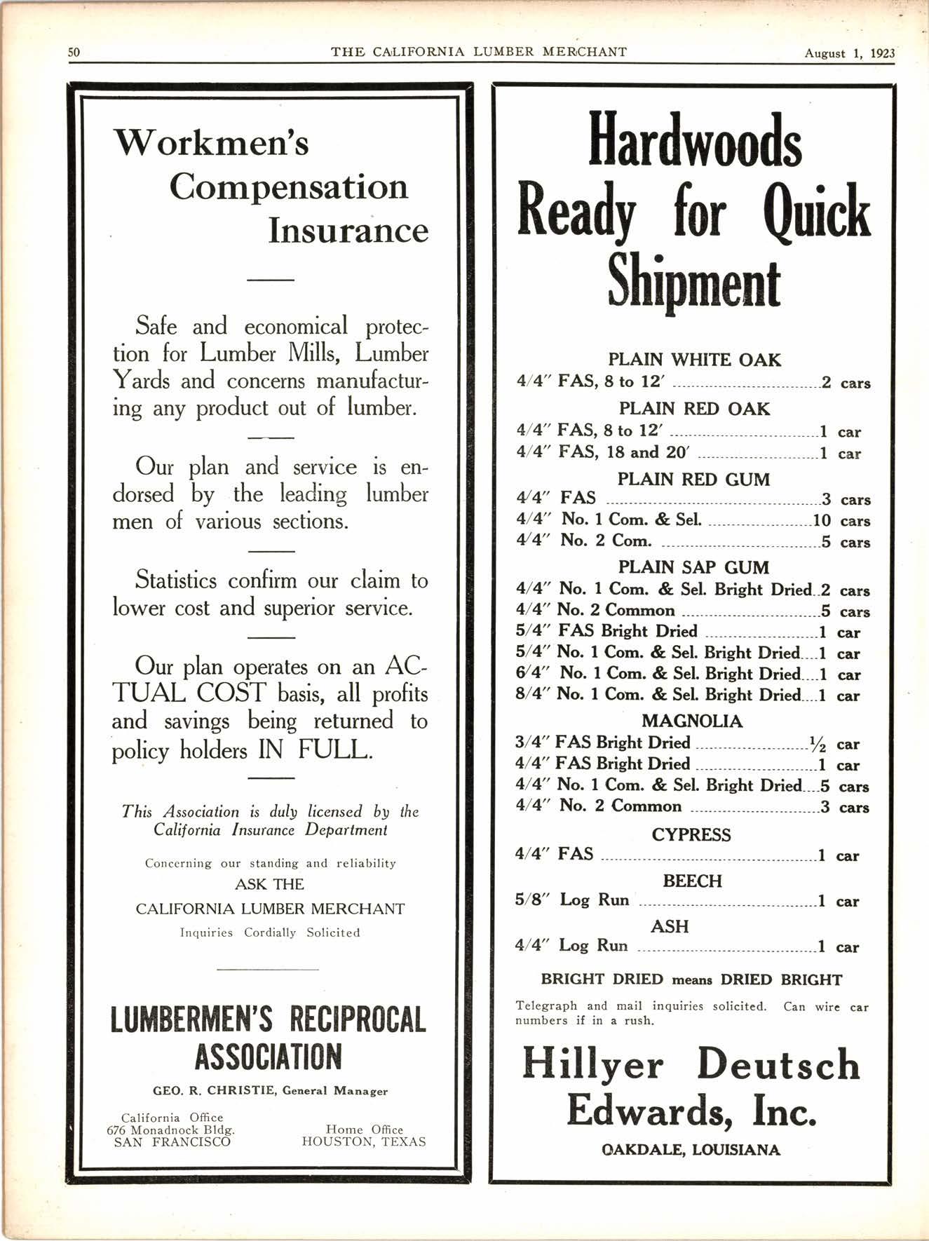 Address: Box 300, care CALIFORNIA LUMBER MERCHANT. :