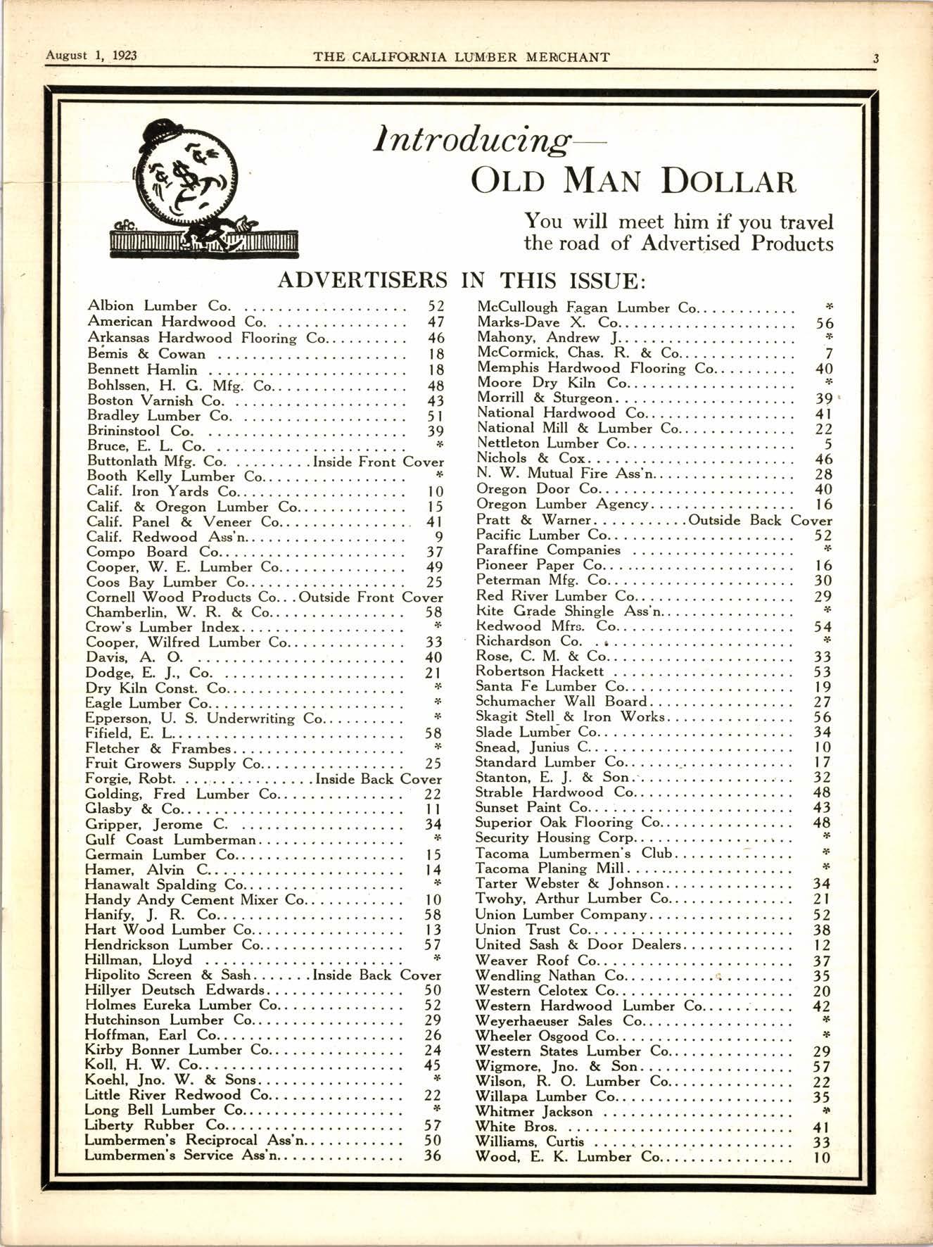 The enclosed wil enable you to continue sonding me the CALIFORNIA LUMBER MERCHANT which I havQ found to be not only a true bueiness counsetror and guide, with its many practical suggestions, but a cheerful friend of the "fireside hour" as well. Accept felicitations for this virile mernber of your family: you orugrht to be a proud daddy.-Rollins A. Brown, Los Angeles.