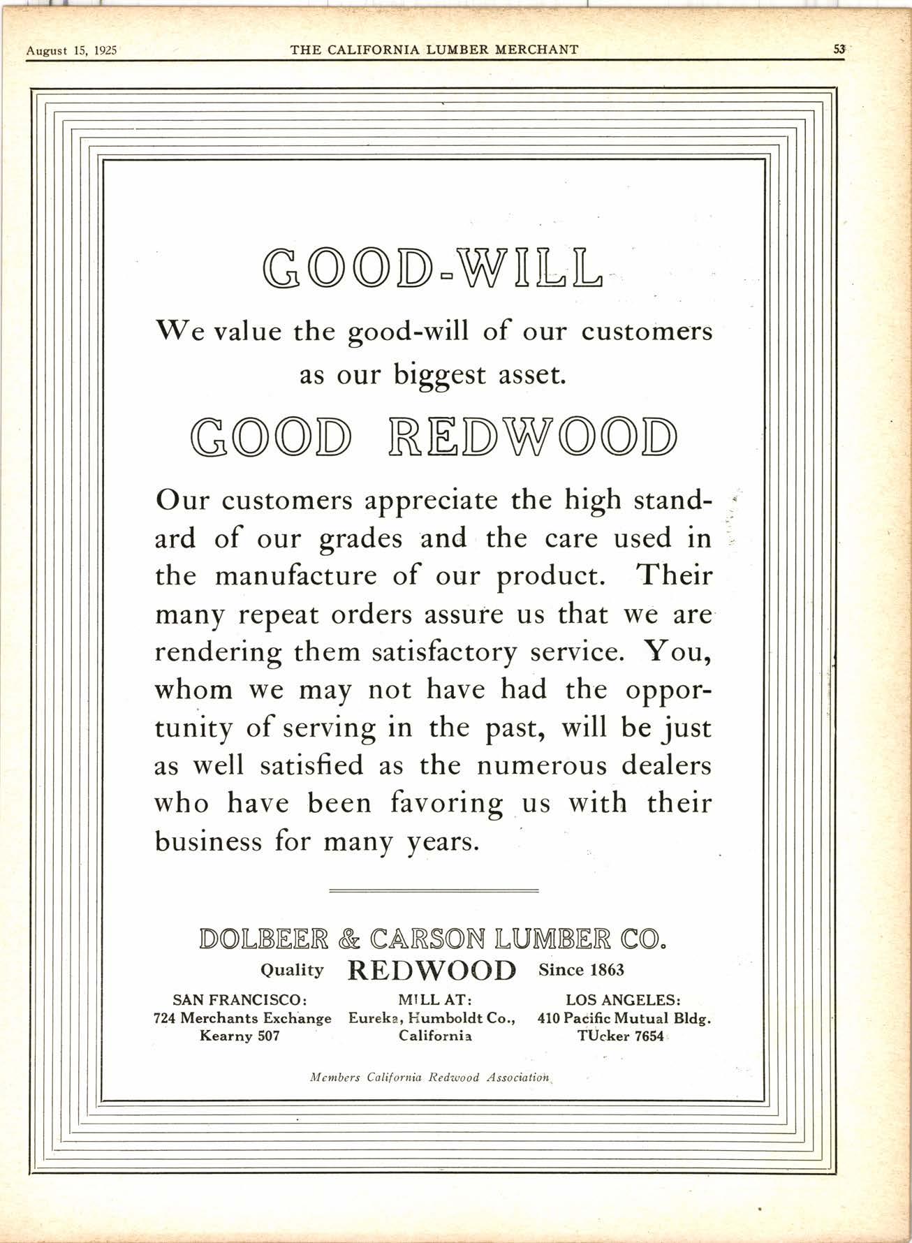THE CALIFORNIA LUMBER MERCHANT August 15, lY25