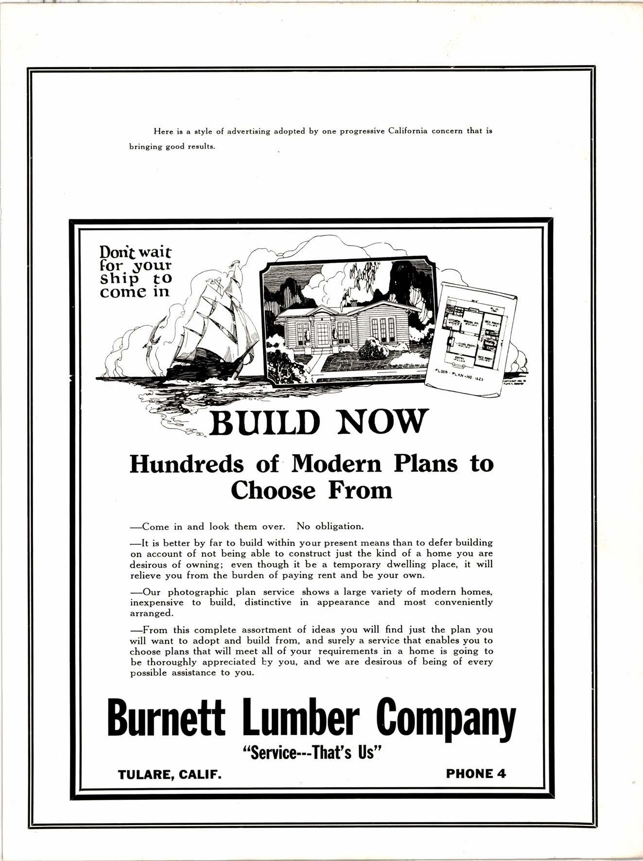Burnett Lumber Company ttService---That's Us" TULARE, GALIF. PHONE 4