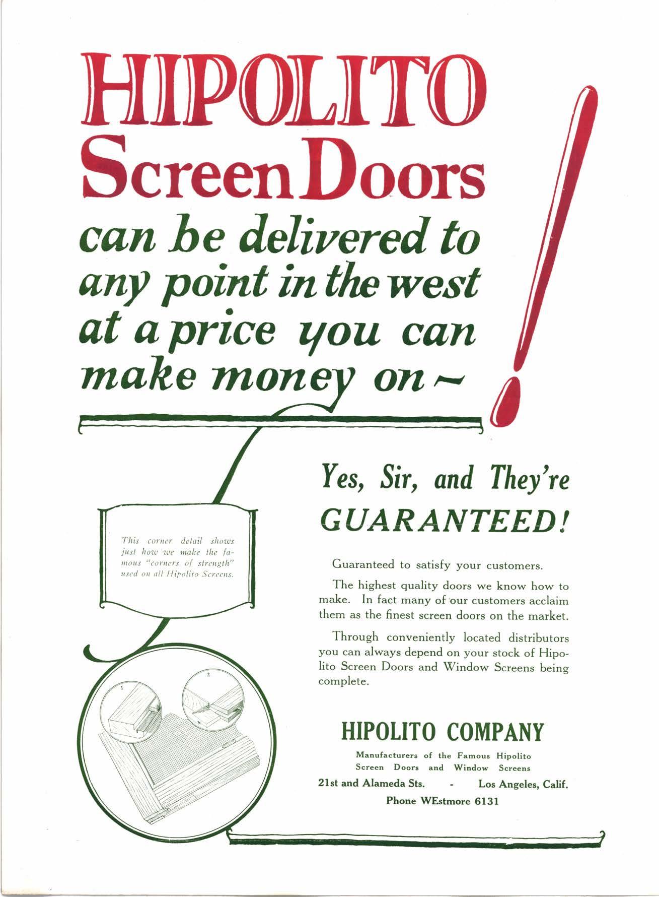 of the Famous Hipolito Screen Doors and Window Screens 21st and Alameda