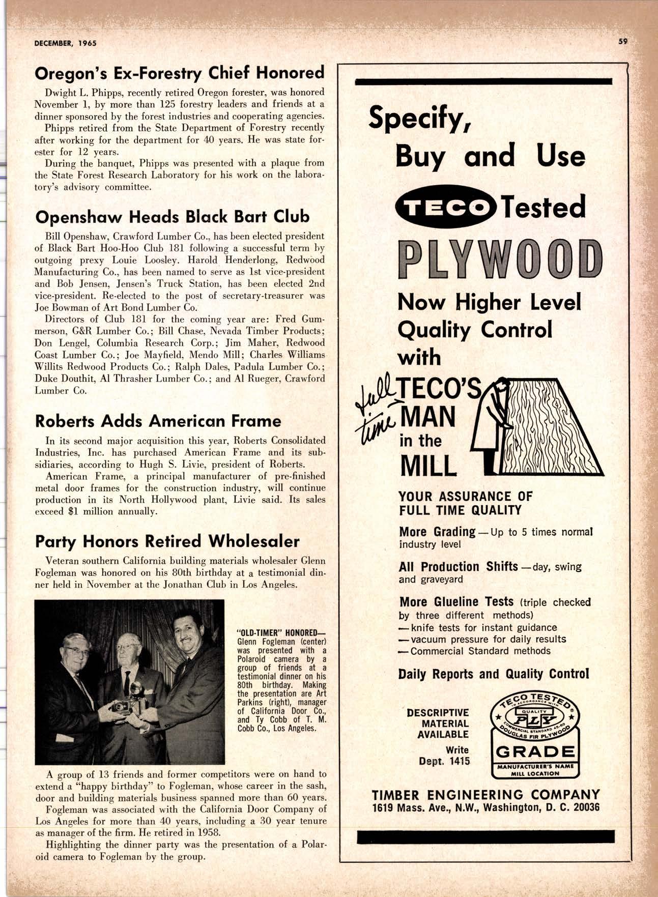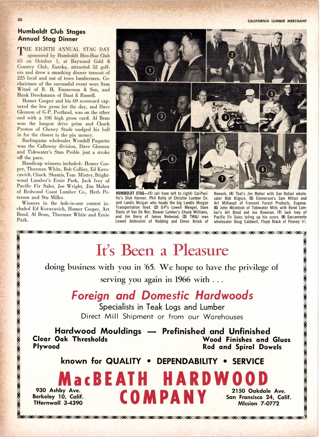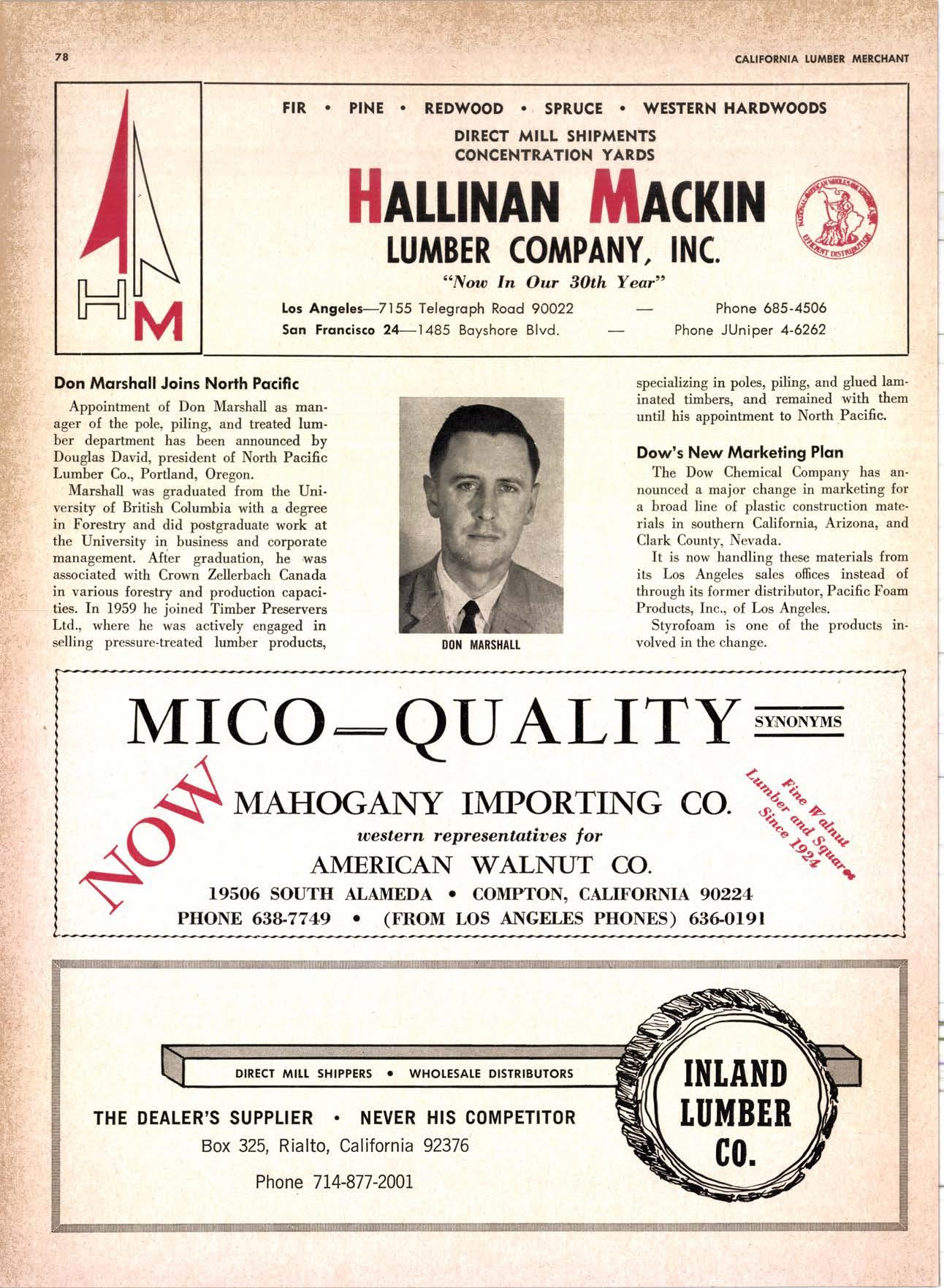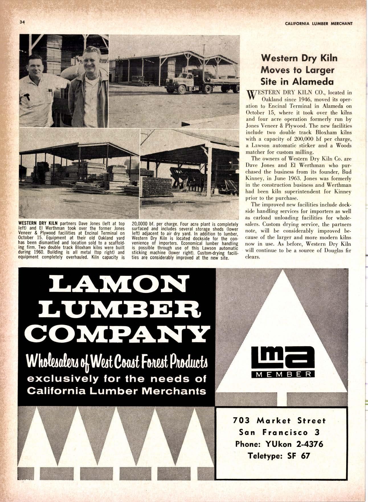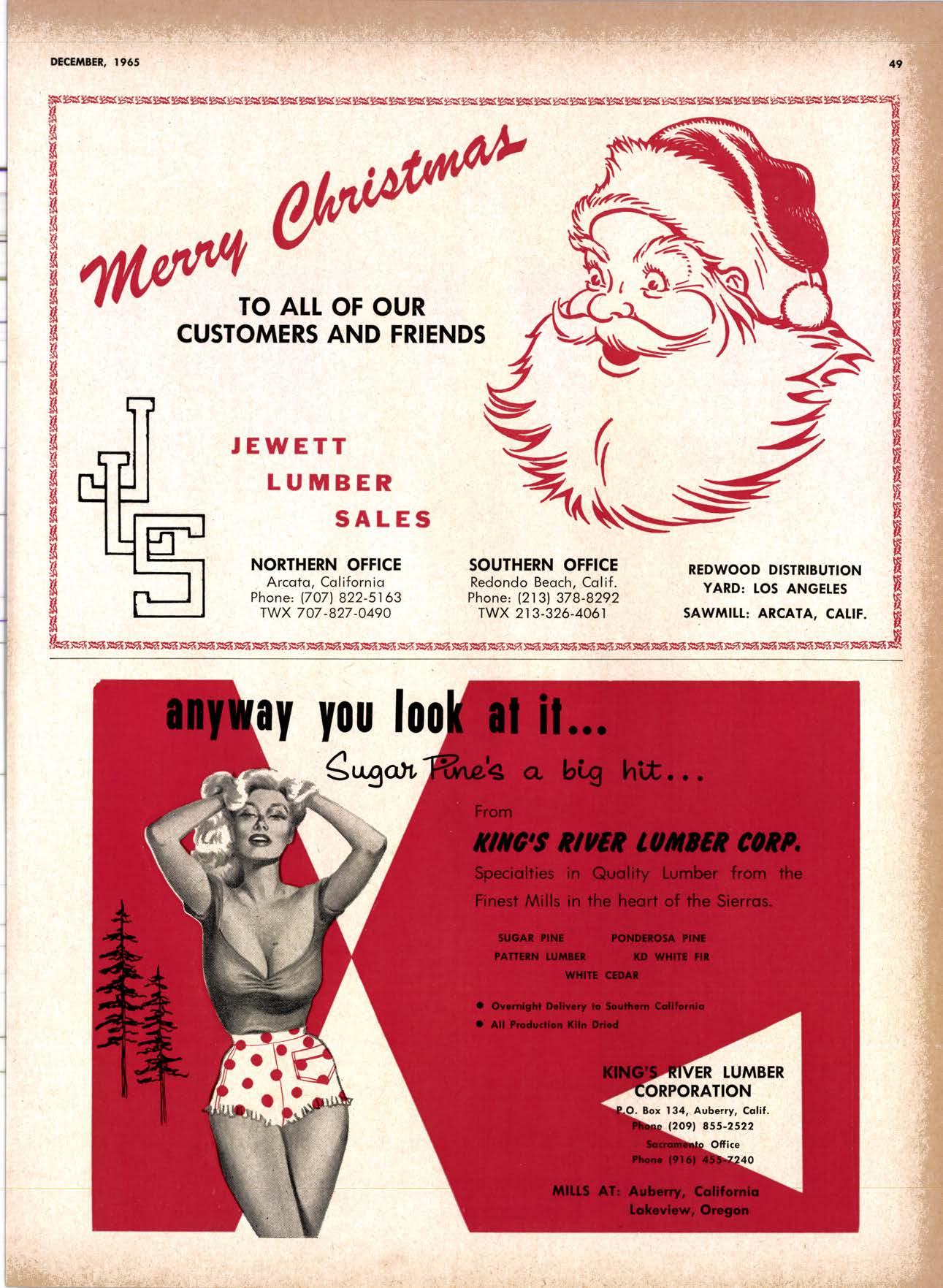 SALES DIAMOND ADDS A NEW LINK TO THE CHAIN SAN JOAQUIN CLUB HOLDS ANNUAL VALLEY FROLIC LOS ANGELES CLUB TWO CONCATS SEVEN KITTENS HALF MILLION DOLLAR FINGER JOINT PLANT OPENS ANNUAL FAMILY WEEKEND GET-TOGETHER STAGED WHITE RE-ELECTED HARDWOOD ASSOCIATION HEAD SAMPLE STANDARDS BALLOT STIRS A STTNK EIGHTH ANNUAL HUMBOLDT STAG DAY A HIT KILN DRYING FIRM MOVES TO NEW QUARTERS IMPORTED HARDWOOD PLYWOOD WRAP-UP CHRISTMAS PARTY FOR UNDERPRIVILEGED KIDS LOGGING CONFERENCE FIRMS PROGRAM DEALERS URGED TO CHANGE SALES METHODS DEPARTMENTS 8 r0 12 14 l5 24 26 28 30 32 34 38 48 56 50 EDITORIAL PAGE PLAN OF THE MONTH CALENDAR VAGABOND EDITORIALS PERSONALS LMA NEWS & VIEWS TWENTY-FIVE YEARS AGO NEW NEW LITERATURE PRODUCT PROFITS 54 68 79 84 85 85 88 r8 20 22 40 42 45 LETTERS CLASSIFIED ADS ADVERTISERS INDEX BUYER'S GUIDE OBITUARIES