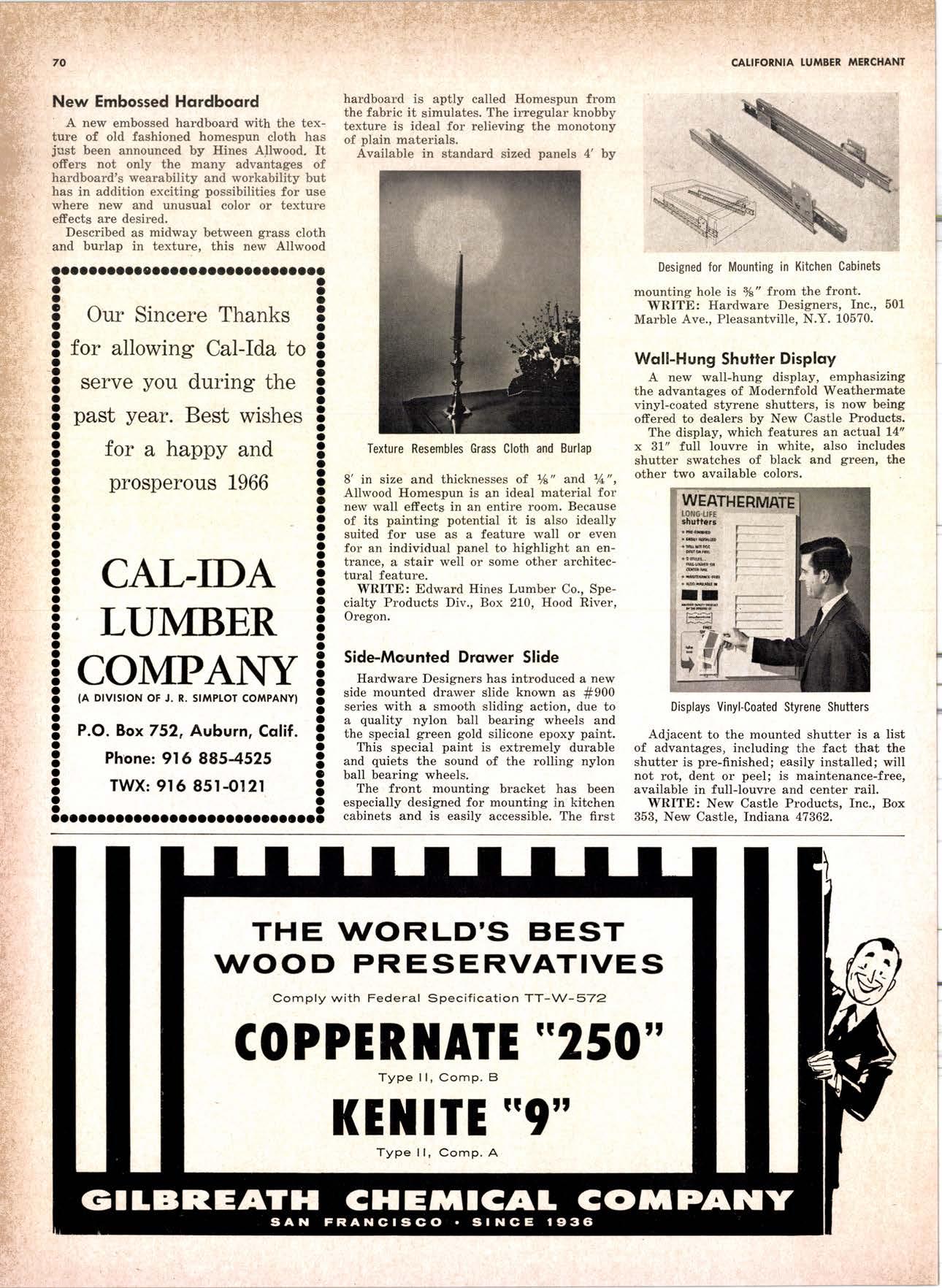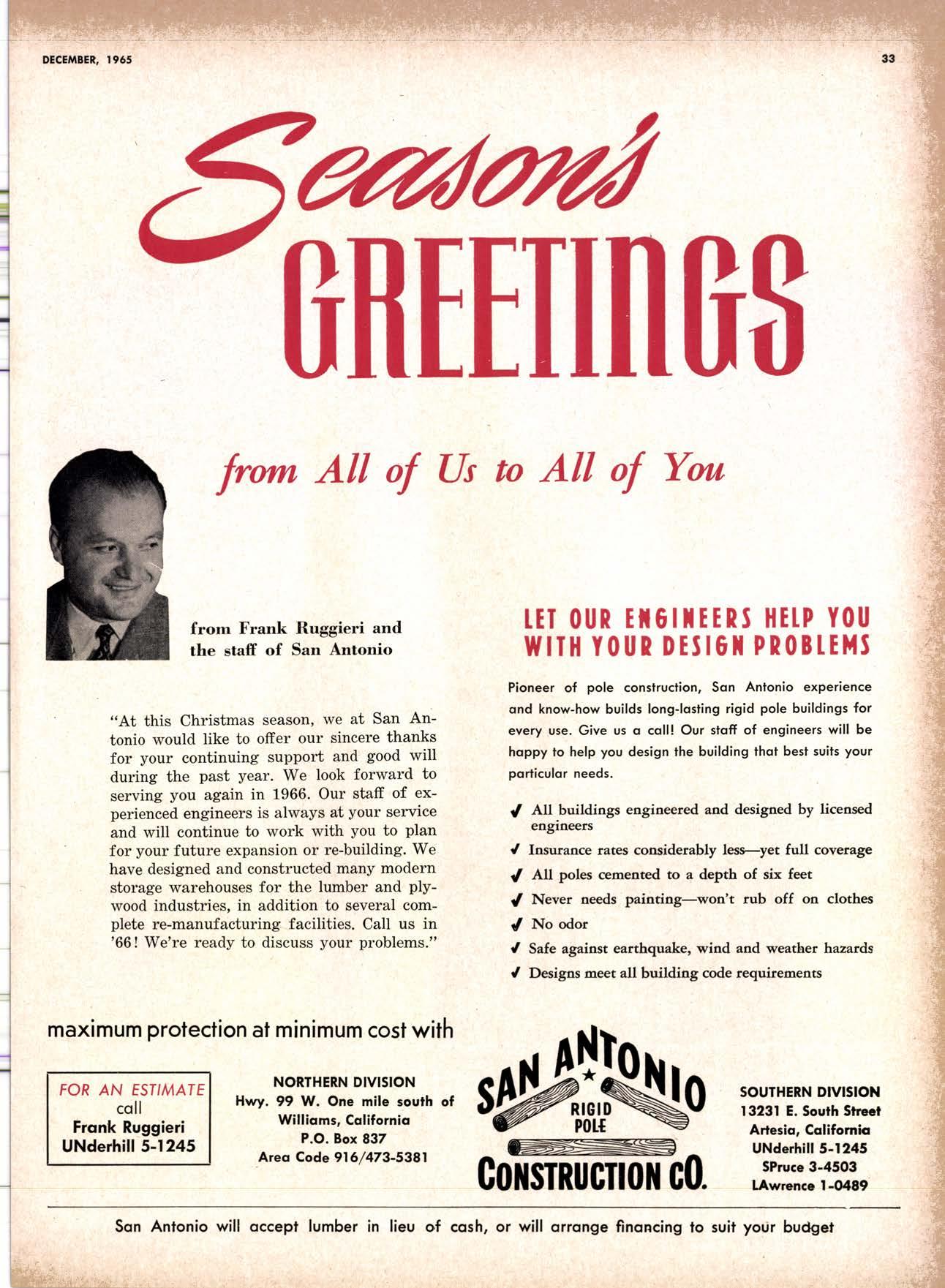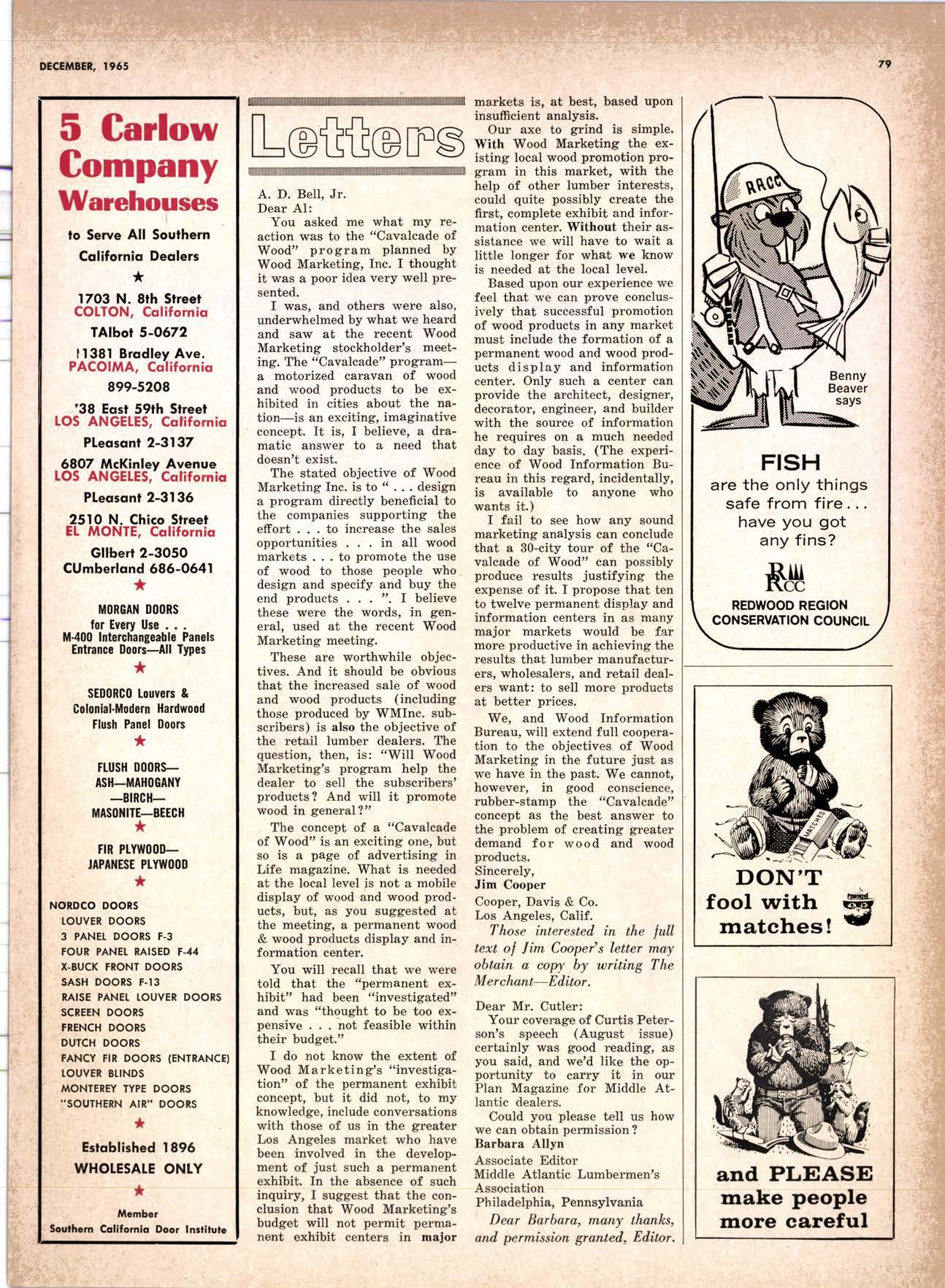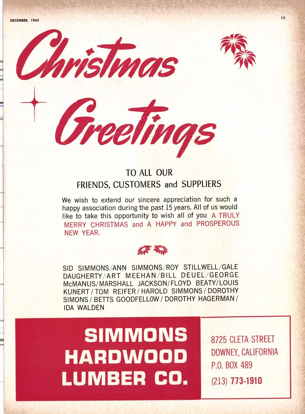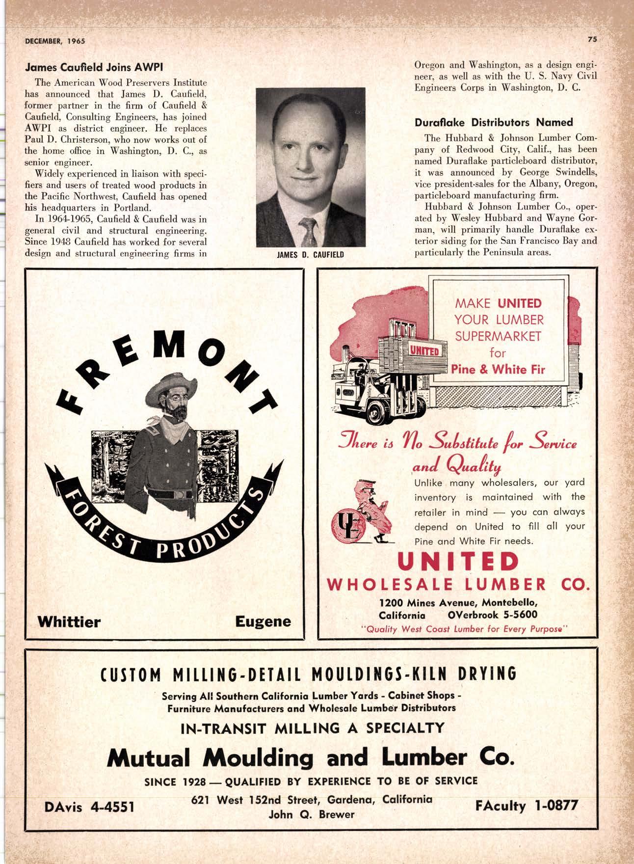 SALES DIAMOND ADDS A NEW LINK TO THE CHAIN SAN JOAQUIN CLUB HOLDS ANNUAL VALLEY FROLIC LOS ANGELES CLUB TWO CONCATS SEVEN KITTENS HALF MILLION DOLLAR FINGER JOINT PLANT OPENS ANNUAL FAMILY WEEKEND GET-TOGETHER STAGED WHITE RE-ELECTED HARDWOOD ASSOCIATION HEAD SAMPLE STANDARDS BALLOT STIRS A STTNK EIGHTH ANNUAL HUMBOLDT STAG DAY A HIT KILN DRYING FIRM MOVES TO NEW QUARTERS IMPORTED HARDWOOD PLYWOOD WRAP-UP CHRISTMAS PARTY FOR UNDERPRIVILEGED KIDS LOGGING CONFERENCE FIRMS PROGRAM DEALERS URGED TO CHANGE SALES METHODS DEPARTMENTS 8 r0 12 14 l5 24 26 28 30 32 34 38 48 56 50 EDITORIAL PAGE PLAN OF THE MONTH CALENDAR VAGABOND EDITORIALS PERSONALS LMA NEWS & VIEWS TWENTY-FIVE YEARS AGO NEW NEW LITERATURE PRODUCT PROFITS 54 68 79 84 85 85 88 r8 20 22 40 42 45 LETTERS CLASSIFIED ADS ADVERTISERS INDEX BUYER'S GUIDE OBITUARIES