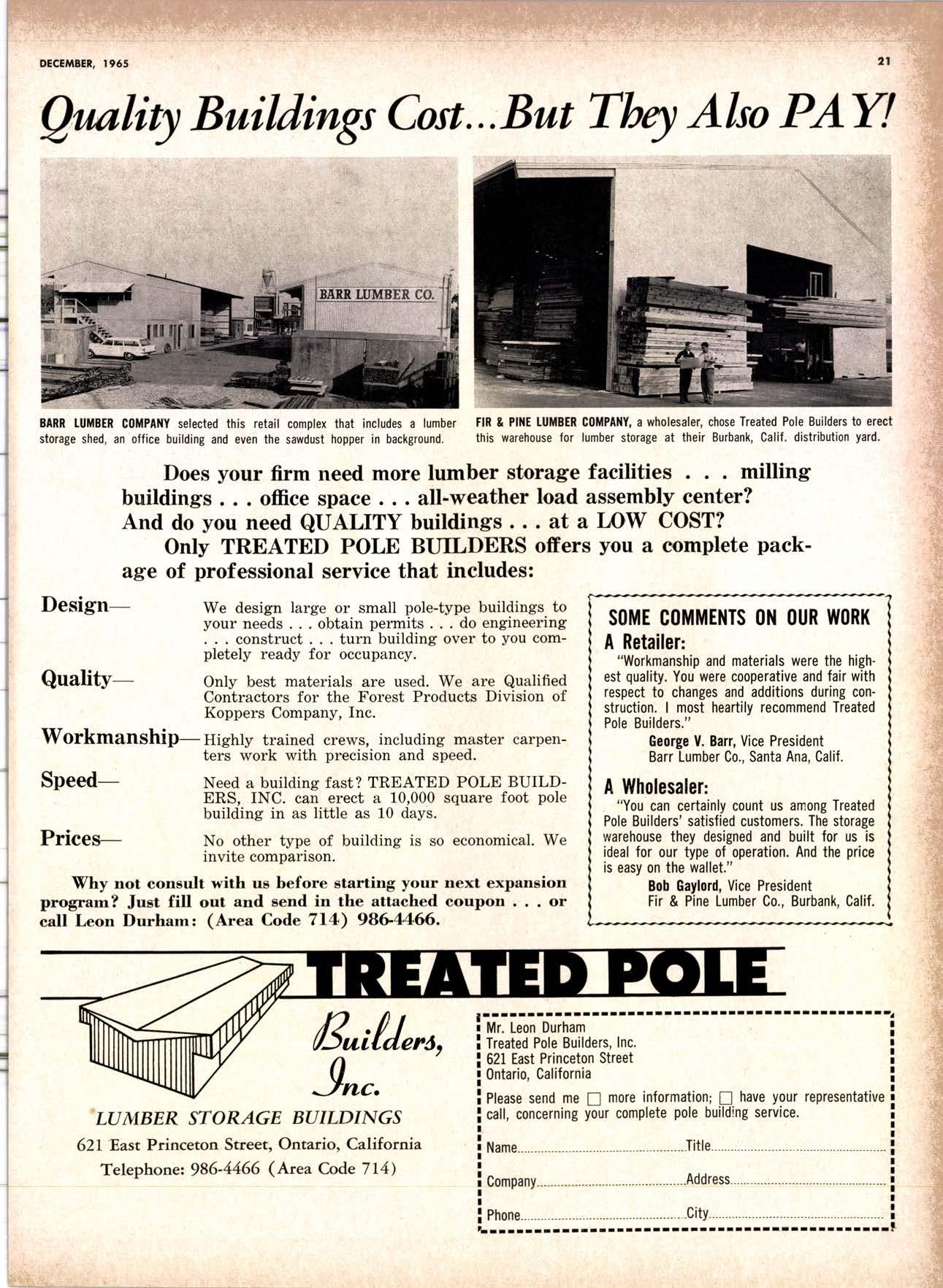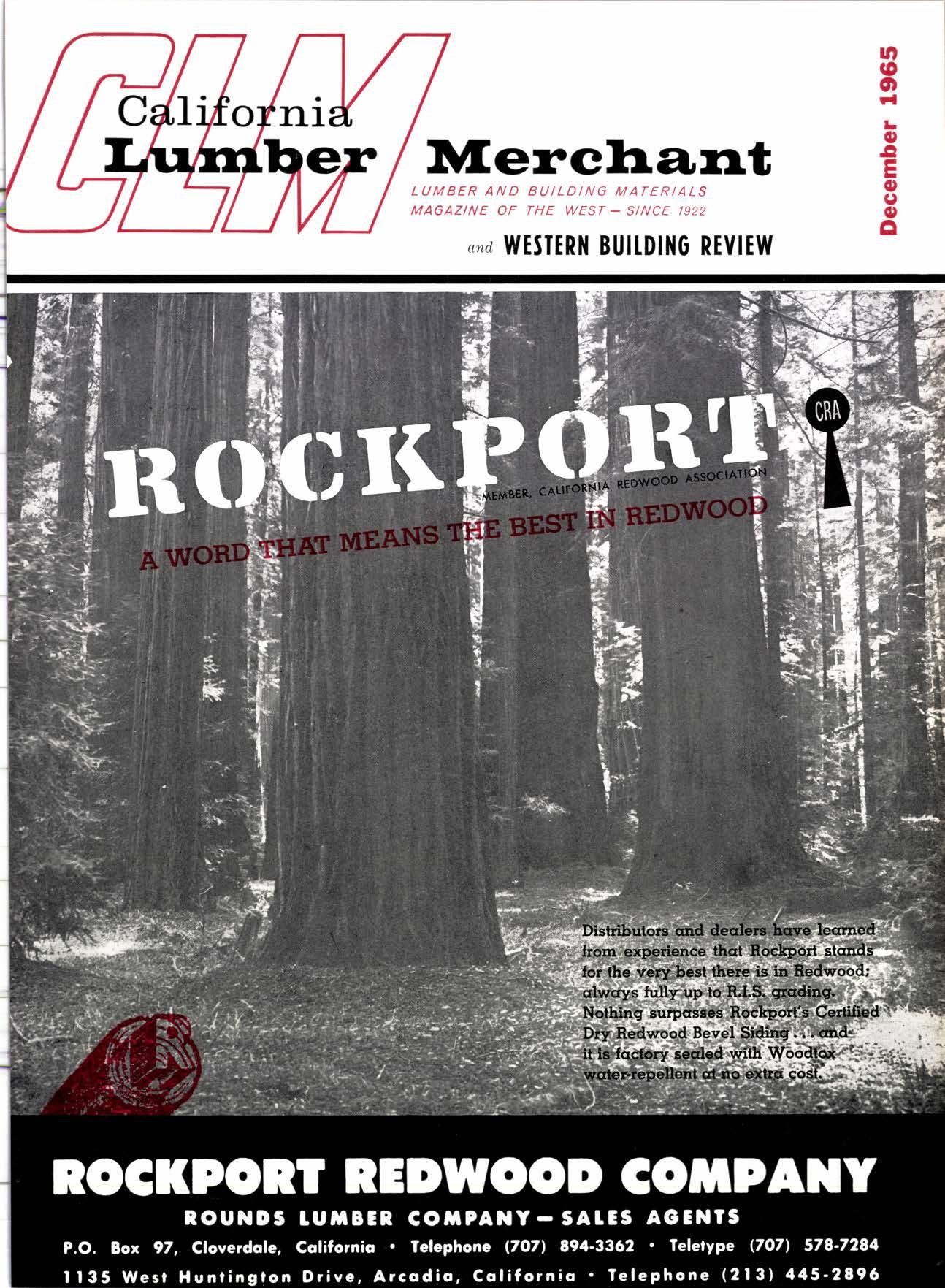 DEC. 1965 vOL. 4,X No. 6 LUMBEI, AND 8U'ID'NG A4A'ET'ATS MAGAZINE OF 'HE WESI-sINCE 1922 ondWESIERN BUILDING REVIEW