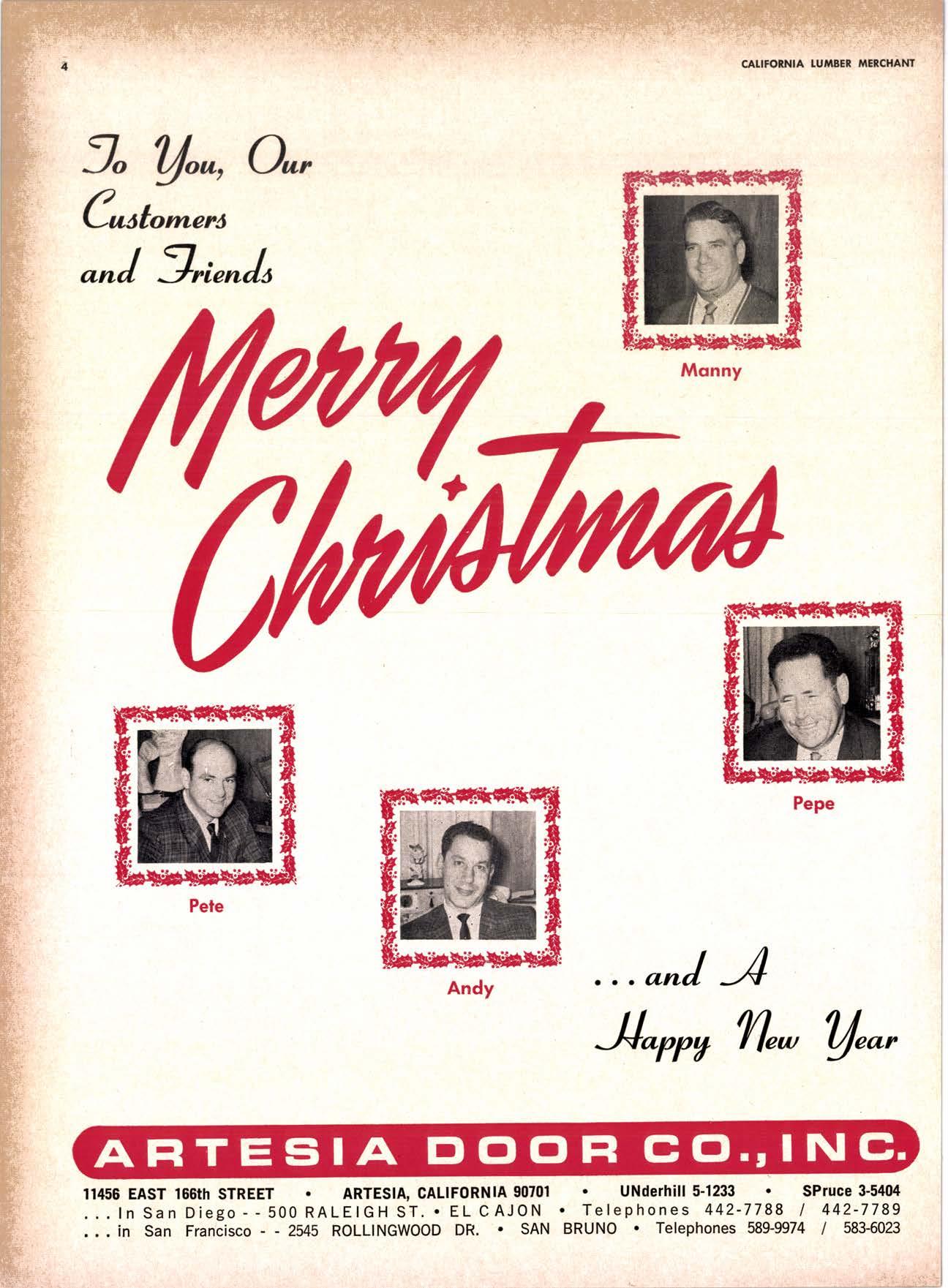 J" /on, A, C^brn*o ooJ %innJo 11456 EAST 166th STREET . ARTESIA, GALIFoRNIA 90701 ...In San Diego - - 500 RALEIGH ST. ' EL CAJON ., , in San Francisco - -2il5 ROLLINGWOOD DR. ' SAN cAr.tFolt{lA LuilEEl lEtcllrlt{t ... onJ -4 louu, Tln* /no, UNderhill 5-1233 . SPruce 3-5404 . Tefephones 442-7788 1442-7789 BRUNO . Telephones 58$9974 / 5836023
