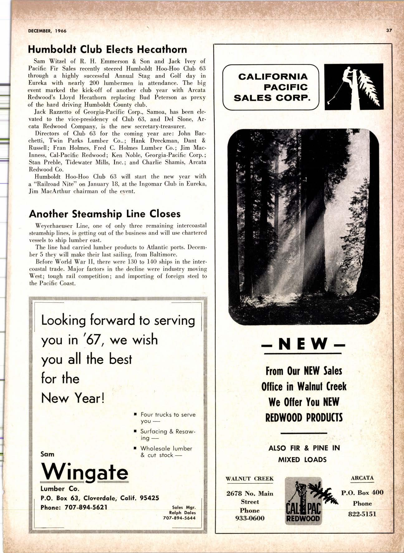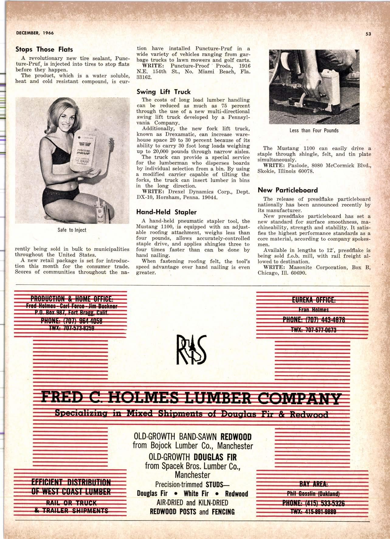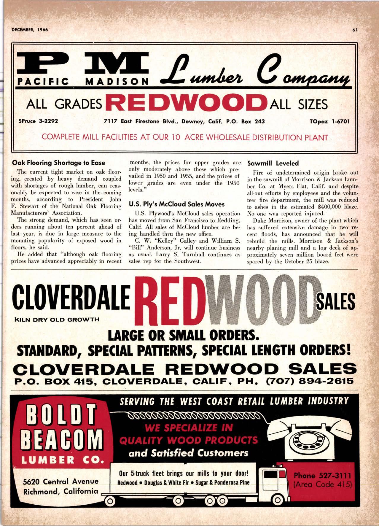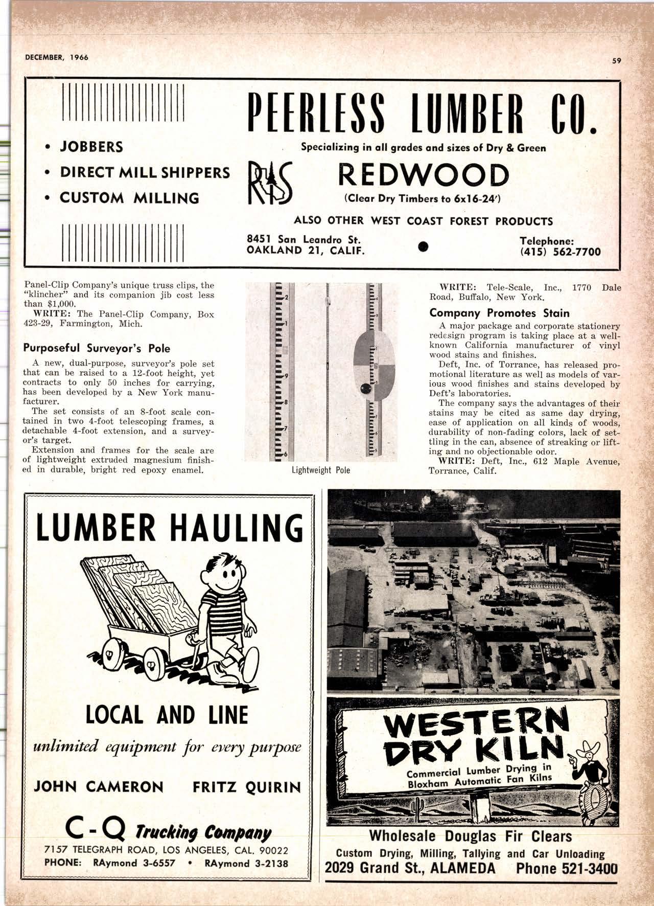 purchased by The Pacific Lumber Company in January 1959. In 1964 he was promoted to assistant general salesmanager and advertising manag'er of T.P.L.