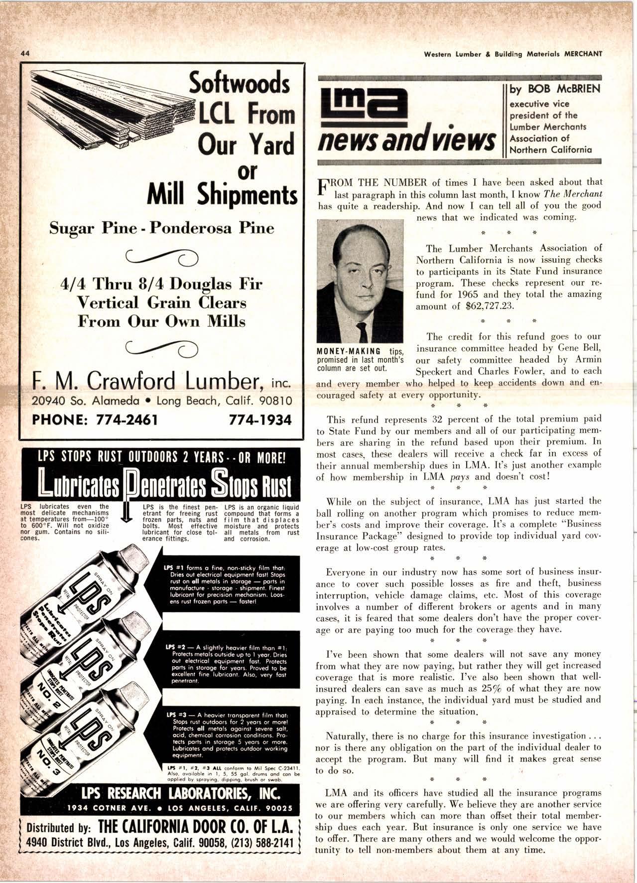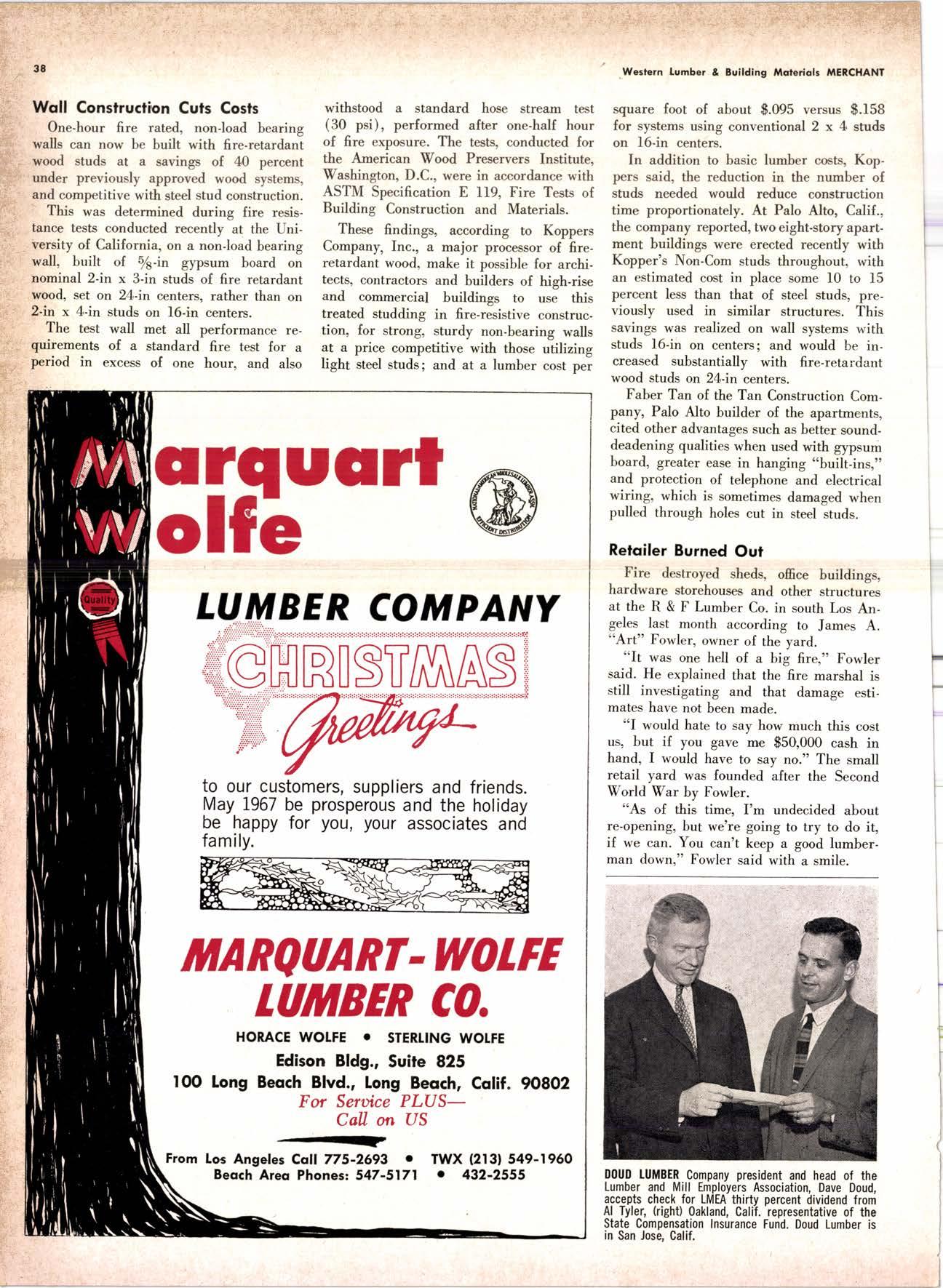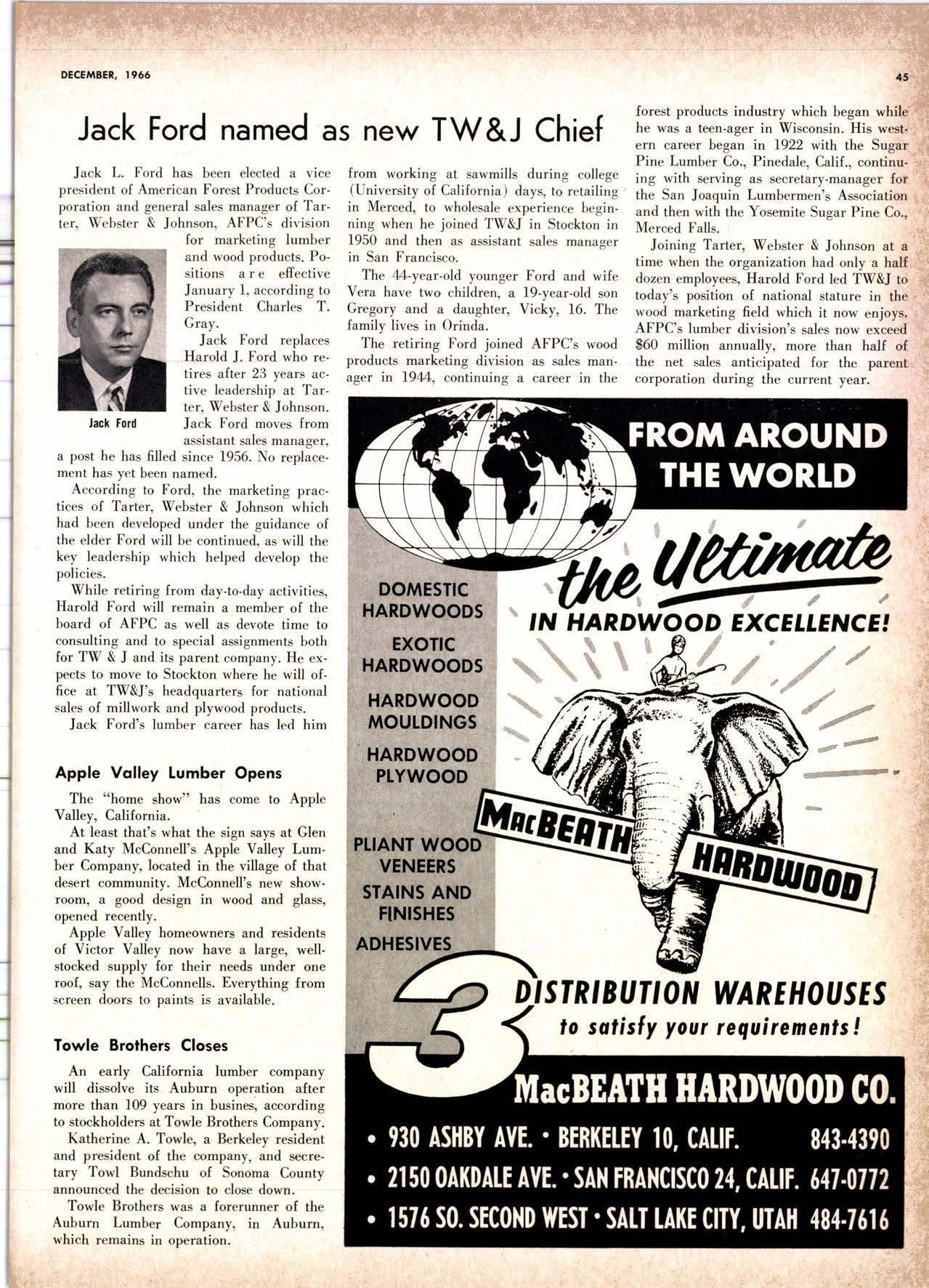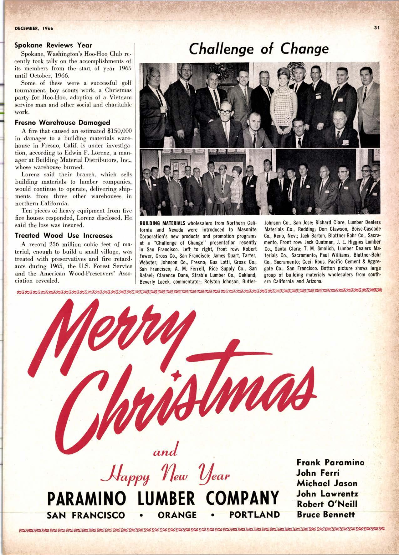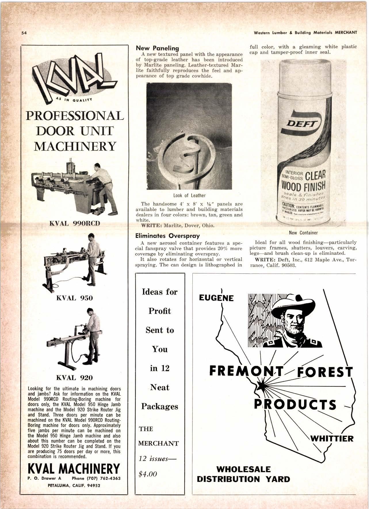 purchased by The Pacific Lumber Company in January 1959. In 1964 he was promoted to assistant general salesmanager and advertising manag'er of T.P.L.