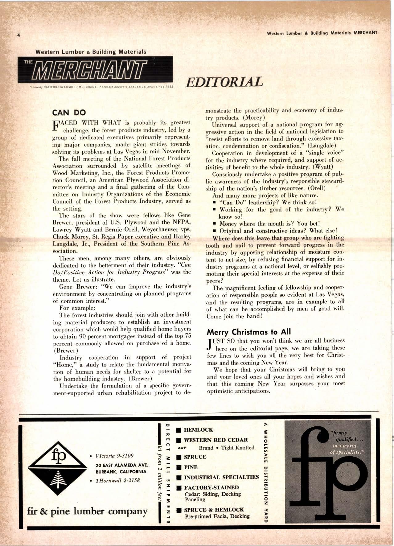 THE MERCHANT is an ind,epend,ent rna,ga,zine publ;ished rnonthfu f or those rnenxbers of the lumber and, building materials industries usho need a,nd, xaa,nt factual, a,ccurate nexos and an objectiue anafusis of eaents and, prod,ucts of concern to them i,n bus'iness.