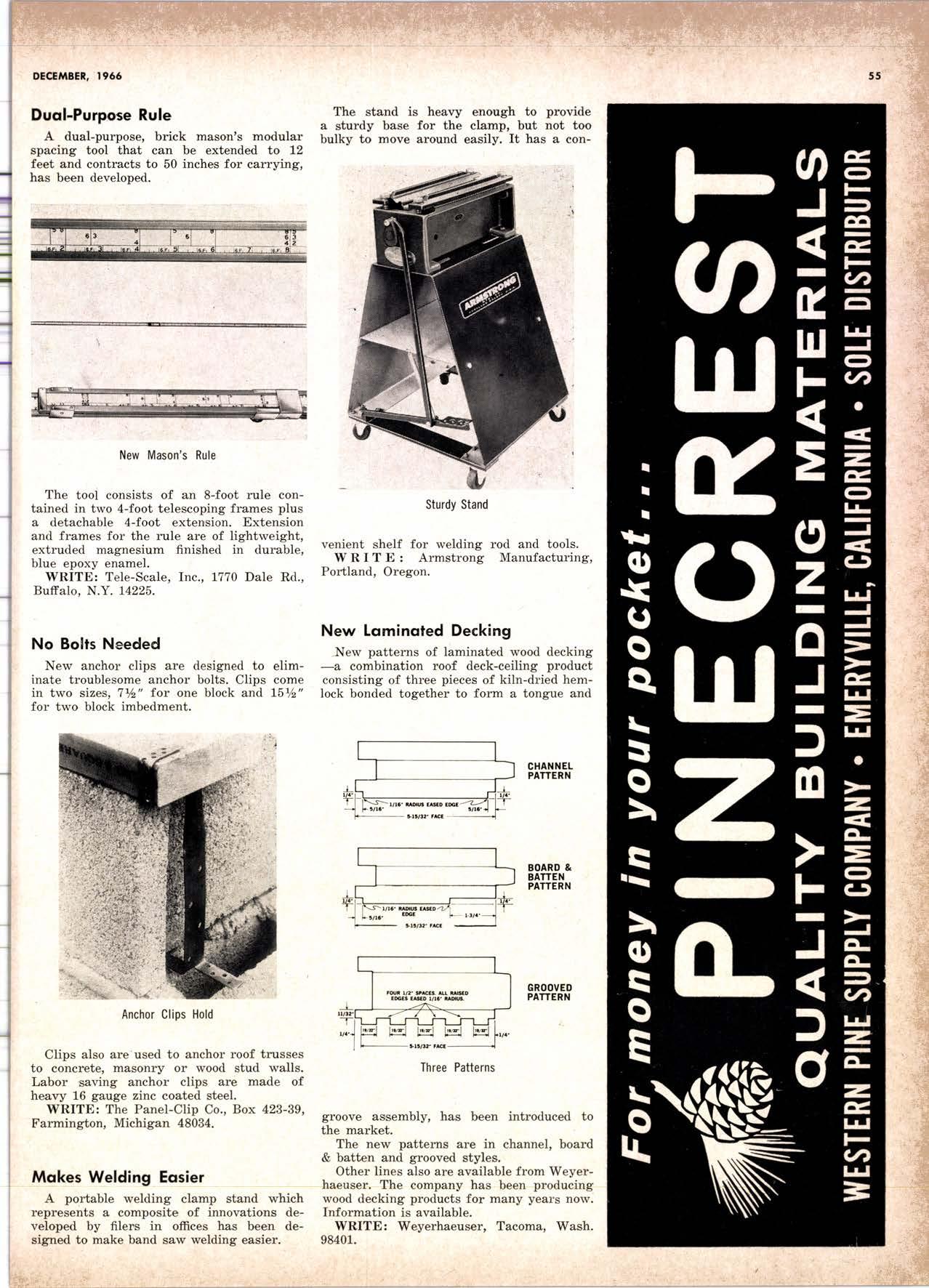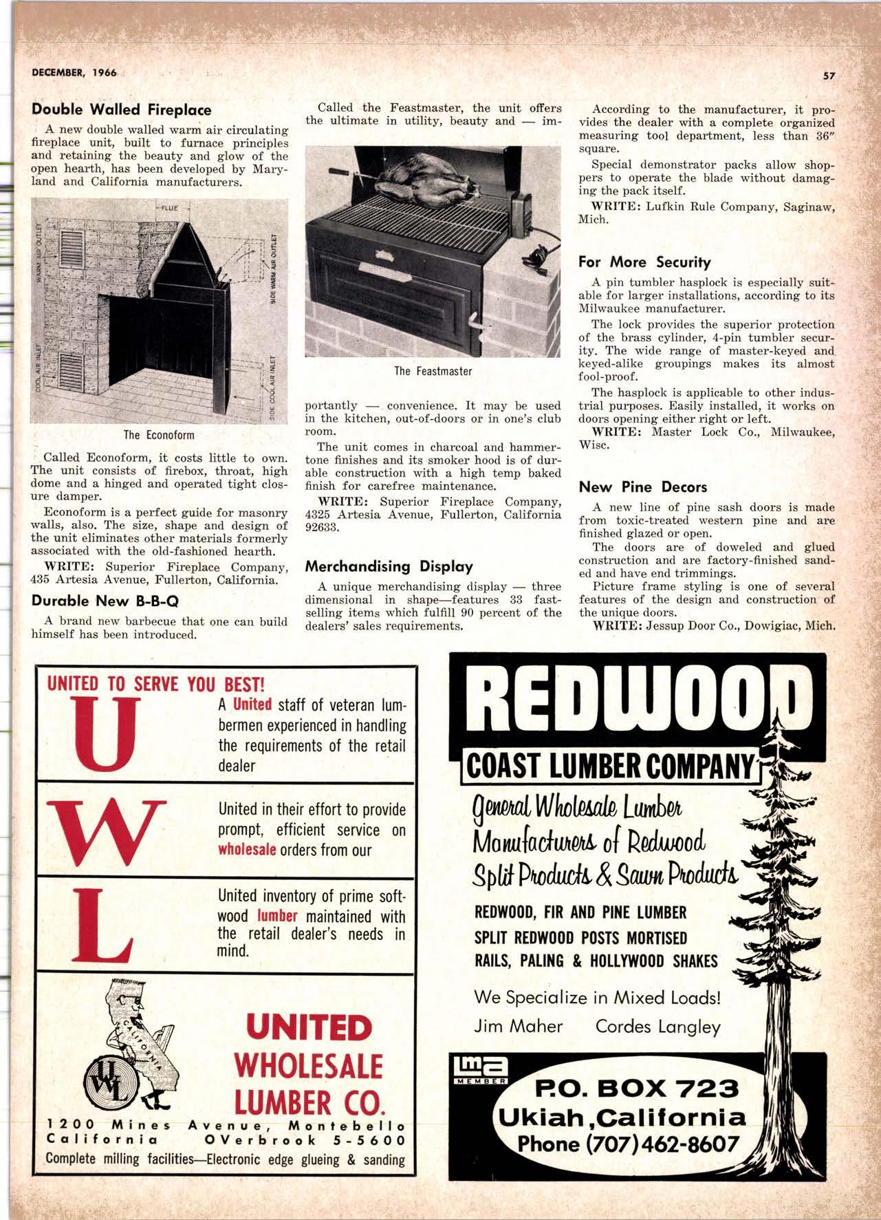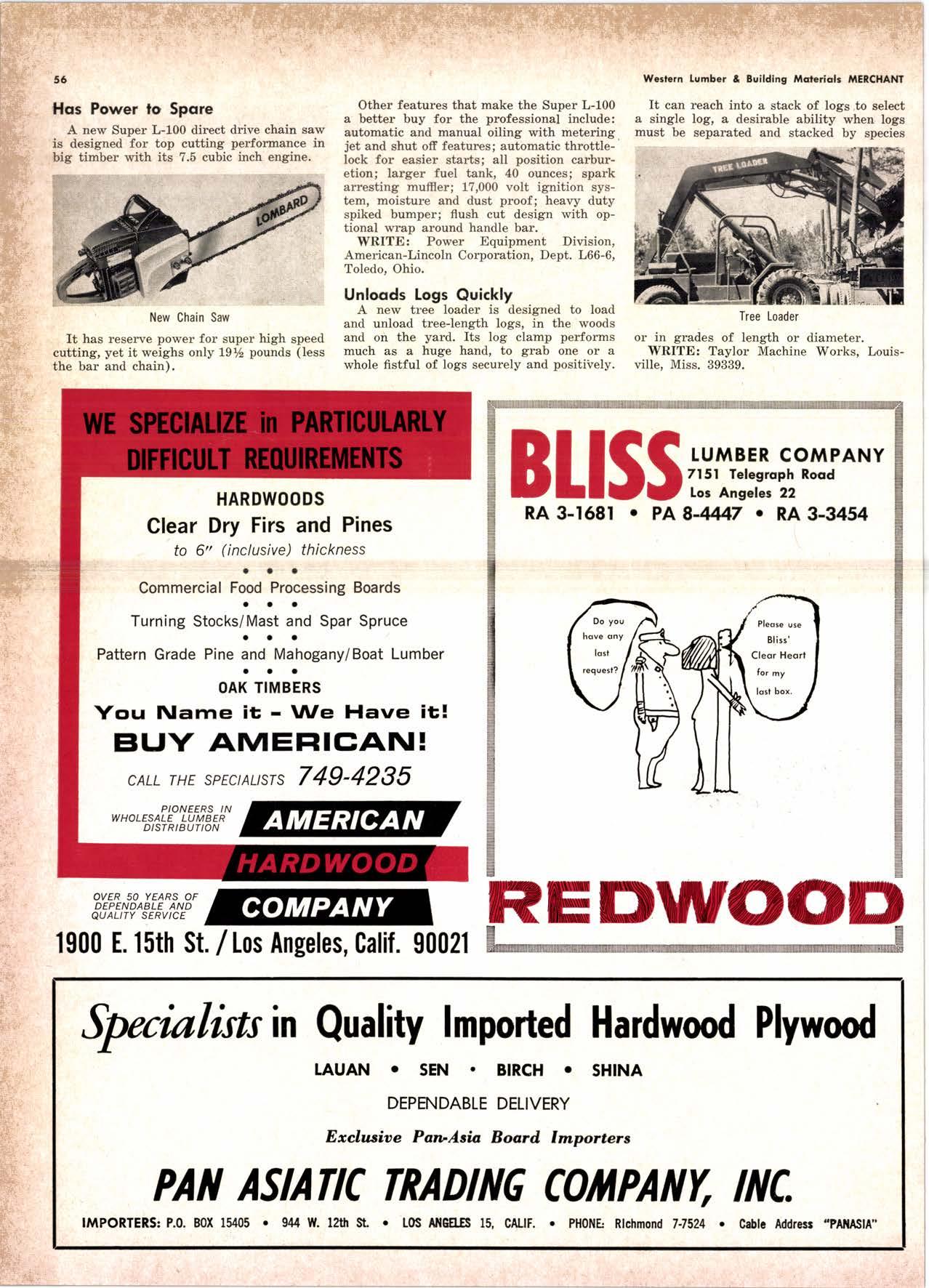 LCL REDWOOD a CAR LOT EDgewood 5-1261 CITY OF INDUSTRY, CALIF. ' l50OO NELSON STREET A Milkon Feet to Serae You! DIRECT HARDWOOD MILT Representotives & Wholesqlers LUMBERVENEERS Precision Dimension REPRESEIITING: Ihe Atlantic l"br. Co.Joston, lll llardwoods Hartzell Walnut Inc.-Piqua, 0hio, lfalnut Lumber Williams Brownell Inc.-Asheville, N.C., Furniture Dimension Robinson Lbr. Co.-llew 0rleans, Gonuine Mahogany J. H. trlonteath Co.-ll.Y.G., Rare Woods & Yeneerc l||t$IIRilI IIARDHOOD t||IIBtR CO. 8687 Wilshire Blvd., Beyerly Hills, Calif., P.0. Box 727 let Us Prove This Coll or wrile "Yo'urs for the Asking" I.UMBER ORRIERT from Berkol y' EsPEctAttY ADAPTABLE TO CUSTOMER t\|[EDs y' scrENTrFrcALrY DESTGNED FOR AI.I TYPES OF WORK y' FALANGED Fot EASE OF HANDTING ls the Cqrt for You! for free brochure BERI((}T MAIIUfA(IURIIIO (OMPAIIY I1285 Goss Slreet, 5un Volley, Colif. Phone: 875'l163 El Montc 2 Milcr VALI-EY 8tVD. Lo Pu.nt. I litilc - -"1 .-'-; -: California Lumber Inspection