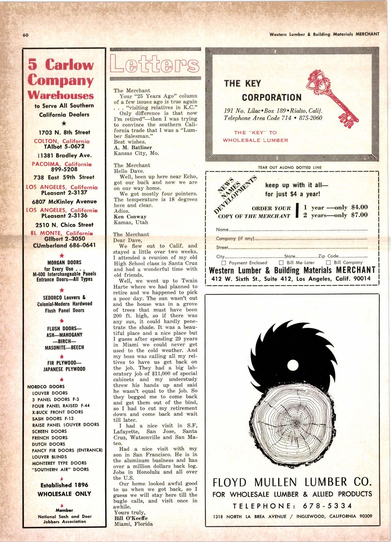 Change of Address-Send subscrlp- tion orders and address changes to Clrculation Department, Western Lumber & Bullding Materlals Merchant, 412 West Sixth St., Los Anseles, CaIlf. 90014. Include address label from recent issue if possible, plu.s new address, zone numDer or zlD code.