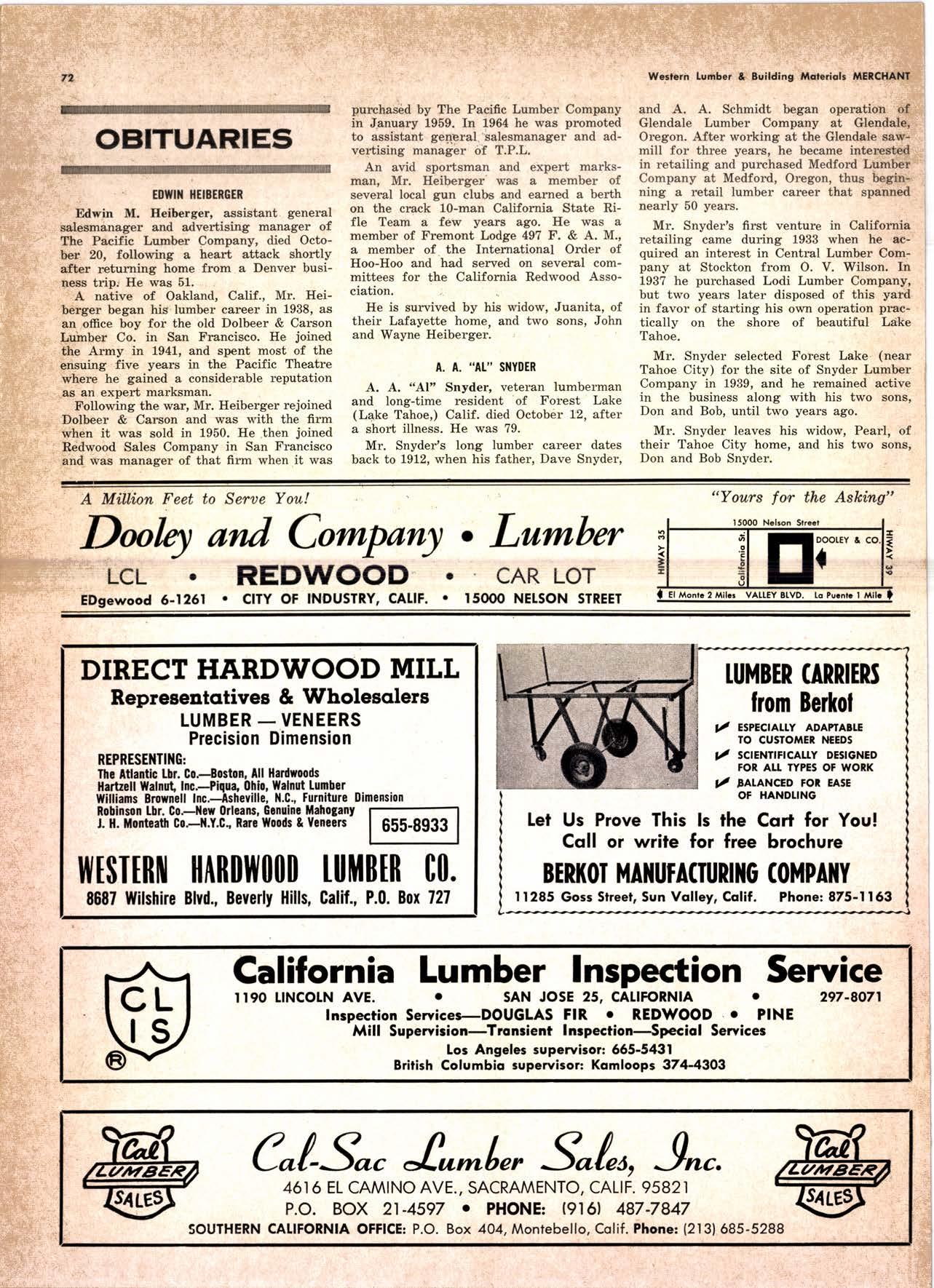 Edwin M. Heiberger, assistant general salesmanager and advertising manager of The Pacific Lumber Company, died October 20, following a heart attack shortly after returning home from a Denver business tripr He was 51.