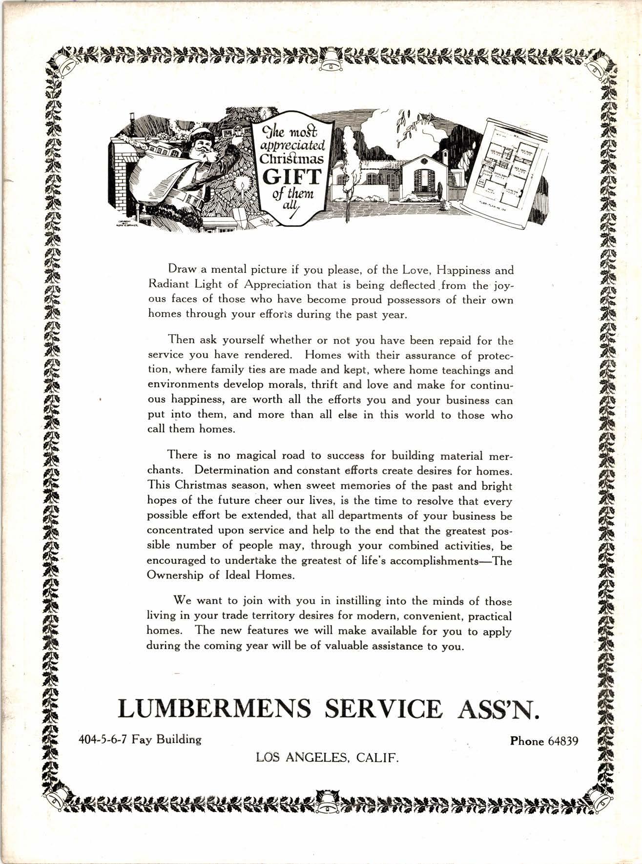 There is no magical road to success for building material merchants. Determination and constant efforts create desires for homes. This Christmas season, when sweet memories of the past and bright hopes of the future cheer our lives, ie the time to resolve that every possible effort be extended, that all departments of your business be concentrated upon service and help to the end that the greatest possible number of people rnay, through your combined activities, be encouraged to undertake the greatest of life's accomplishmsnls-fhg Ownership of ldeal Homes.