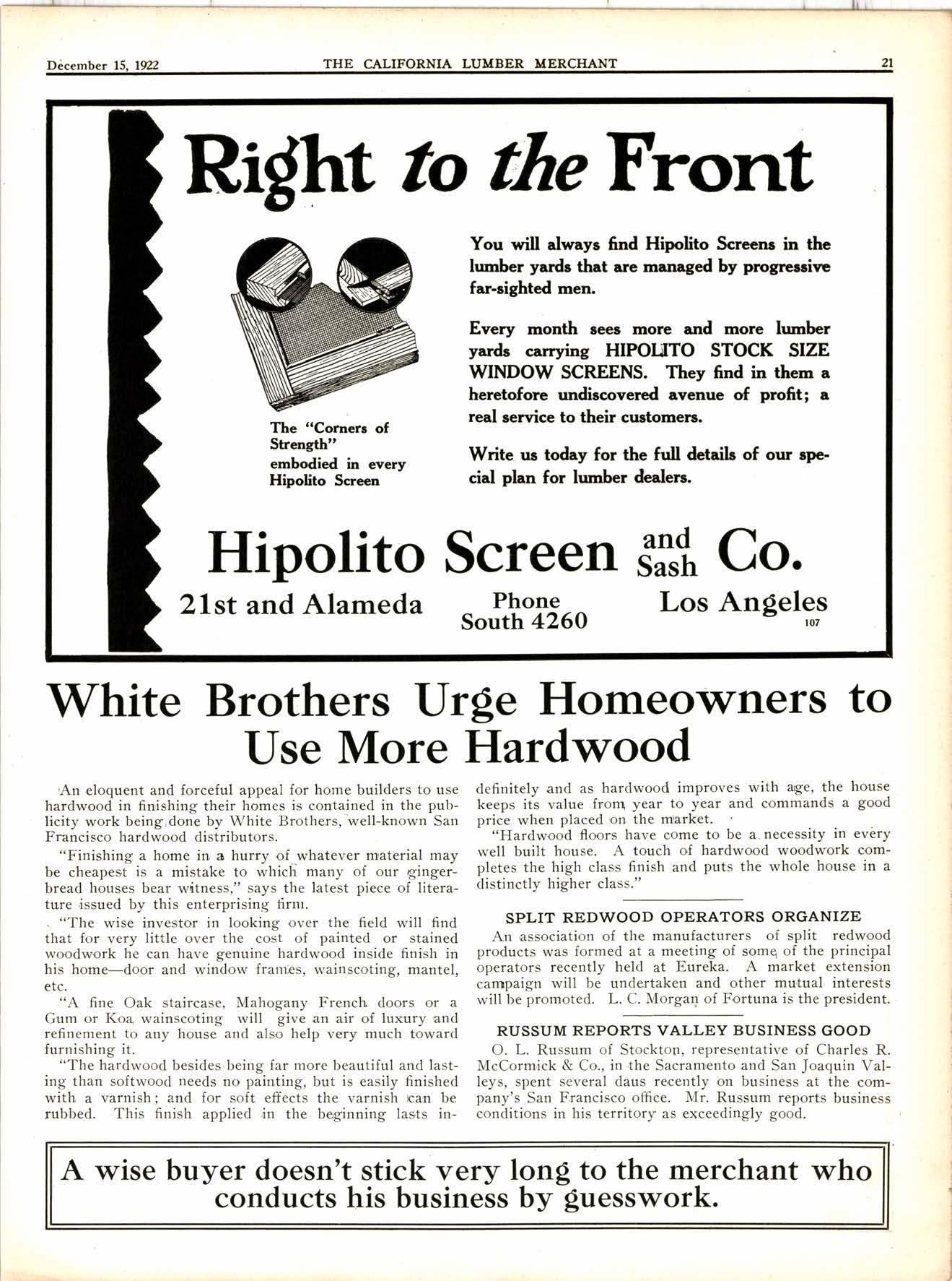 Hipolito Screen 3l$ Co. White Brothers Urge Homeowners to Use More Hardwood