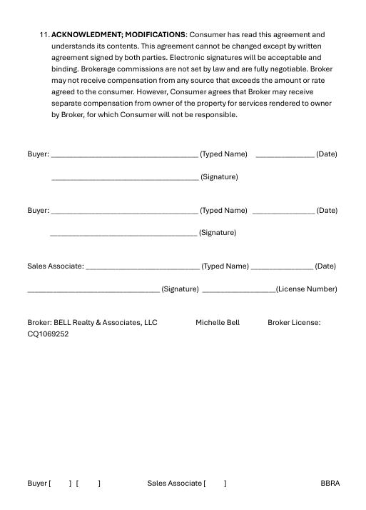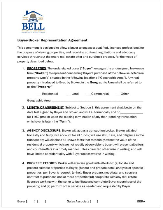 Recent changes in real estate require us to use a buyer-broker representation agreement, which outlines our mutual expectations before we can show homes. This is now mandatory for all real estate professionals and brokerages. The BuyerBroker Representation Agreement allows me to work on your behalf and explains my broker fee, including potential ways for the seller to cover it instead of you.