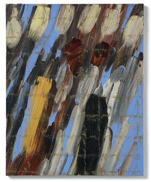 I auktionens verk ”Runtom trappa” från 2008 återgår konstnären till sin serie målningar från 1997 till 2002 och speciellt ”Runtom trappa VIII”. Det är en strålande vacker målning där trappstegen upptar nästan hela bilden. Uppe på krönet öppnar sig bilden mot ett avlägset landskap med träd som avtecknar sig mot en glödande kvällshimmel. Mitt i trappan finns en färg som sakta tycks rinna ned i ett stilla flöde av violett. Husväggarna som omger trappan utgör ett kalejdoskop av färgfläckar och ljusreflektioner.