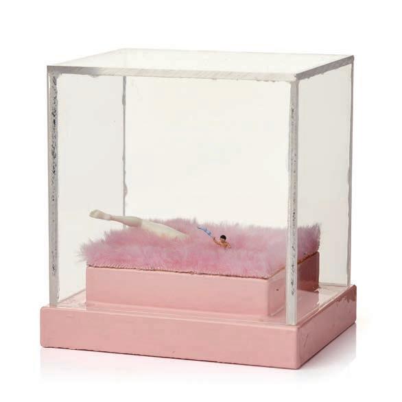 Signerad M.L De Geer Bergenstråhle och daterad 1976. Med dedikation a tergo. Akryl och assemblage på duk monterad i plexibox. Höjd 14 cm, bredd 14 cm, djup 5,5 cm.