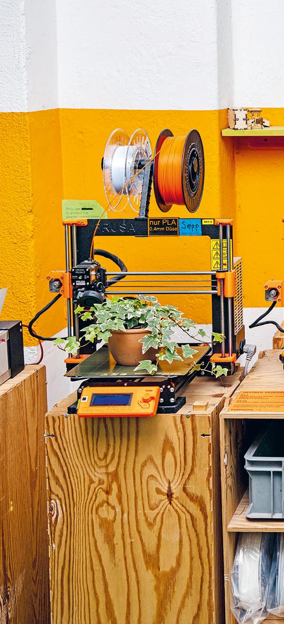 Forscher Claudio Beretta ist auf Lebensmittelverschwendung spezialisiert (Interview S. 19) und wurde hier im Fablab Zürich fotografiert. Mit den 3-DDruckern im Hintergrund lassen sich massgeschneiderte Ersatzteile fürs Reparieren von Alltagsgegenständen herstellen (S. 29 ff.).