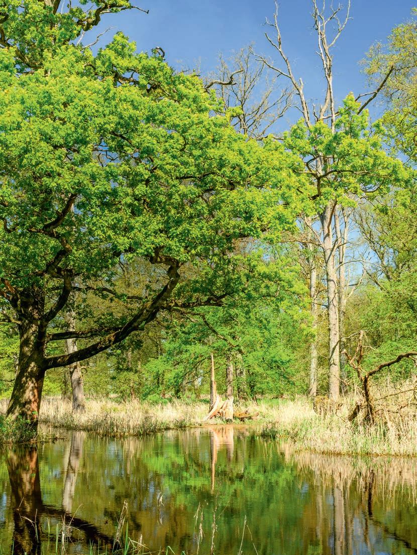 Seit über zehn Jahren arbeitet das Auenzentrum des BUND daran, die Hohe Garbe zu renaturieren. Die 400 Hektar große Halbinsel an der unteren Mittelelbe ist mit altem Auwald bewachsen. Da die Elbe sie nicht mehr regelmäßig überschwemmen konnte, drohte der Wald auszutrocknen. 2020 öffnete der BUND einen alten Deich und erweckte zahlreiche Flutrinnen zu neuem Leben. Seitdem strömt die Elbe wieder regelmäßig ein, selbst bei leichtem Hochwasser. Davon profitieren die alten Eichen, aber auch Moorfrosch und Rotbauchunke, Seeadler und Schwarzstorch oder Fische wie Zander und Quappe. Angesichts zunehmender Starkregen und Dürren sind intakte Auen auch als Wasserspeicher wichtiger denn je. > www.bund.net/elbauen