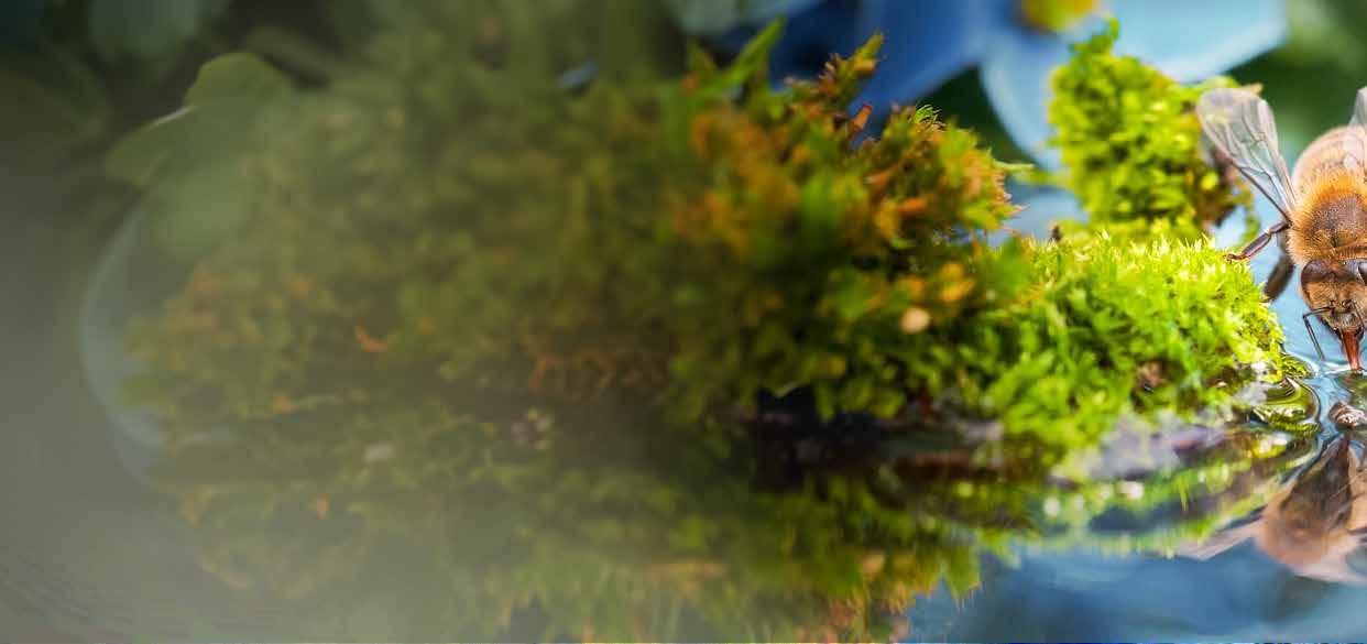 Achten Sie auf eine ausreichende Bepflanzung Ihres Gartenteichs, damit Insekten problemlos landen können. Steile Uferbereiche können durch unterschiedlich große Steine oder eine einfache Ausstiegshilfe wie z.B. ein Brett mit Querlattung entschärft werden.
