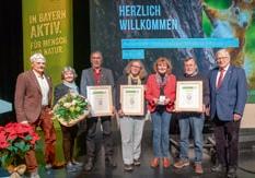 Maria Furtwängler (li.) erhielt den Deutschen Kulturpreis 2025 aus den Händen von Bayerns Sozialministerin Ulrike Scharf (Mitte). Die Laudatio hielt Hubert Weiger (re.), Ehrenvorsitzender des BN.