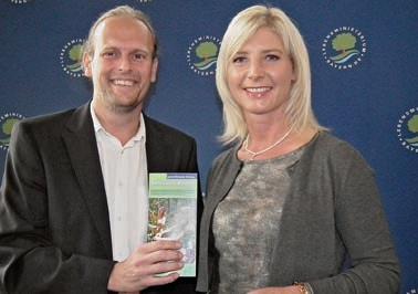 Unser Bild zeigt Gerhard Brunner vom AK Umweltbildung mit Ministerin Ulrike Scharf.