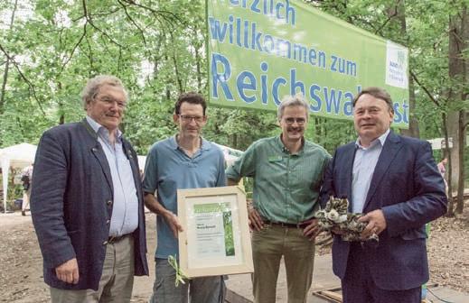 Bei der Übergabe der Reichswaldmedaille: (vo. li.) BN-Vorsitzender Hubert Weiger, der Leiter der NN-Lokalredaktion Michael Husarek, der BN-Landesbeauftragte Richard Mergner und Bayerns Minister für Ernährung, Landwirtschaft und Forsten, Helmut Brunner