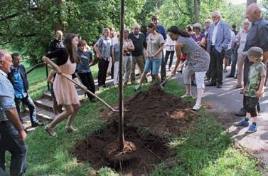 aktuellen Bürgerentscheid gegen den geplanten Flughafen Coburg. Der Landesvorsitzende Hubert Weiger dankte den Aktiven, die trotz mancher verlorener Kämpfe den Mut nicht verloren hätten. Gabriele Künzler, Künstlerin am Landestheater und BN-Vorstandsmitglied, sowie der Chor Vokale Contakte sorgten für einen festlichen Rahmen. Zusammen mit Kindern und Jugendlichen der Untersiemauer JBN-Gruppe pflanzten die Festgäste eine Linde im Schlosspark (Foto).