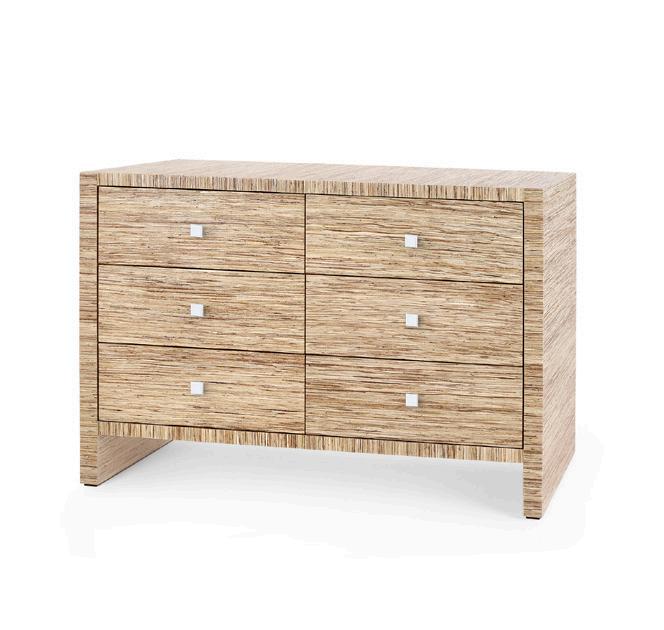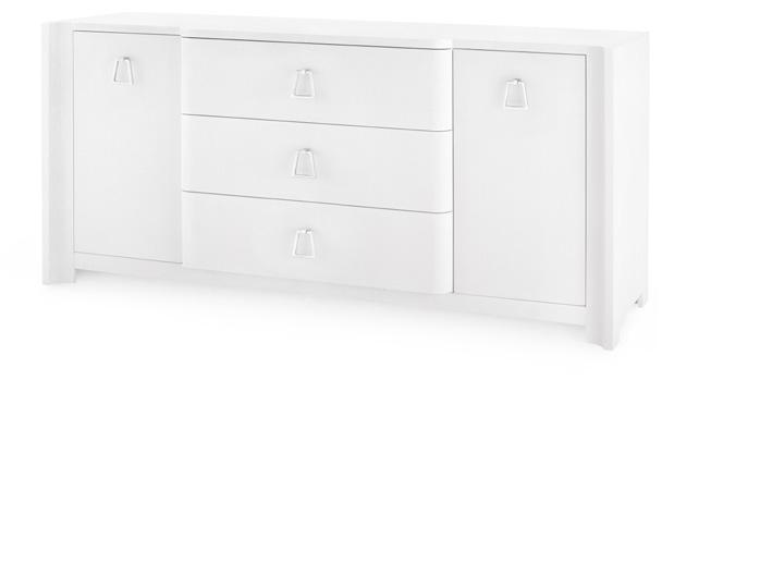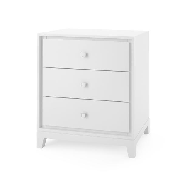 BARDOT 3-DRAWER SIDE TABLE CHIFFON WHITE, PIGMENTED LACQUERED GRASSCLOTH