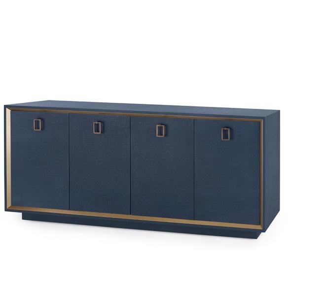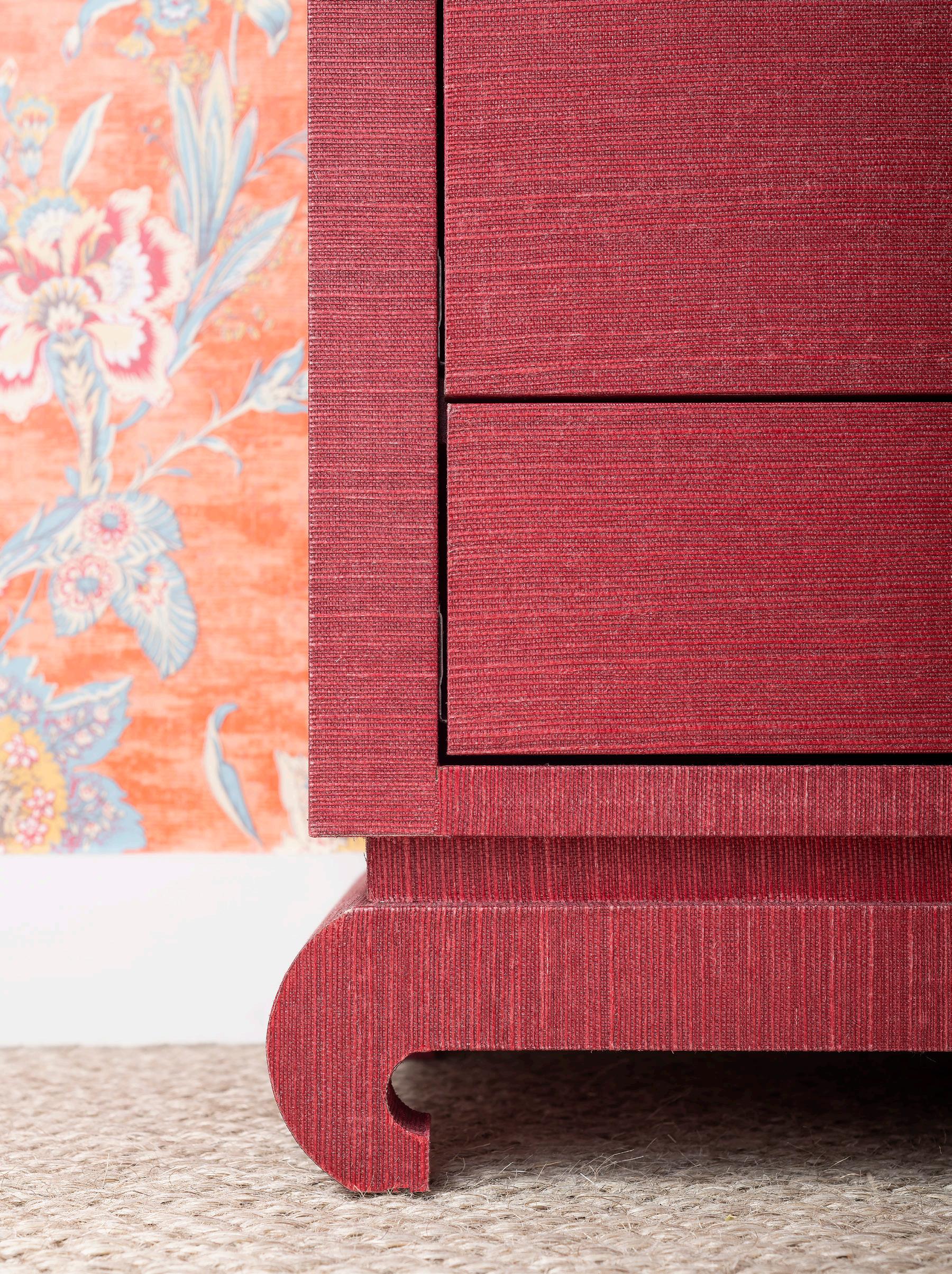 Our lacquered linen—a signature finish that allows the organic material’s texture to shine through—is hand wrapped seamlessly around the curves and corners of our case goods with exactness and precision. You can feel the organic linen fabric’s rippled texture which is meticulously sealed by hand with layers of lacquer. We offer three kinds of linen weaves: washed lacquered linen for a soft and smooth feel, standard lacquered linen for a delicate but raised surface, and lacquered heavy linen for a thicker plaster-like appearance.
