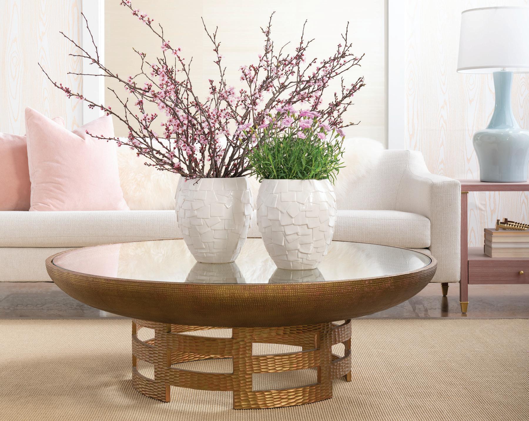 Bethany Large Rectangular Coffee Table (BTH-315-538, p. 24), Girasol Large Vase (GRL-710-109, p. 46), Girasol Vase (GRL-700-109)