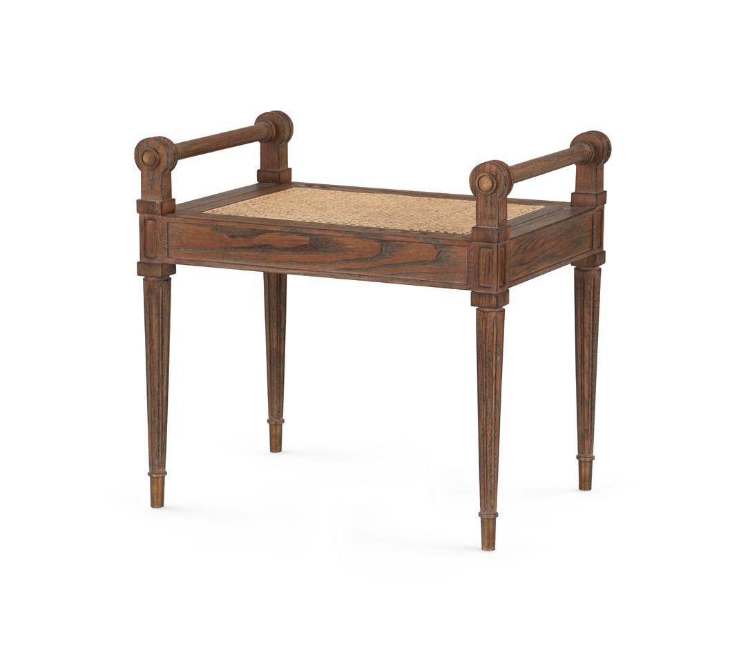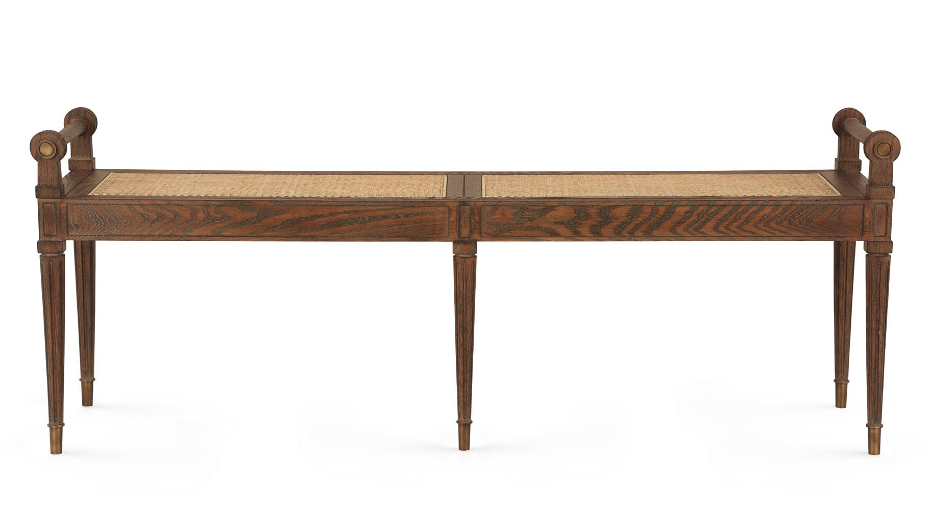 OAK WOOD AND VENEERS, NATURAL CANE, ANTIQUE FINISHED CAST BRASS