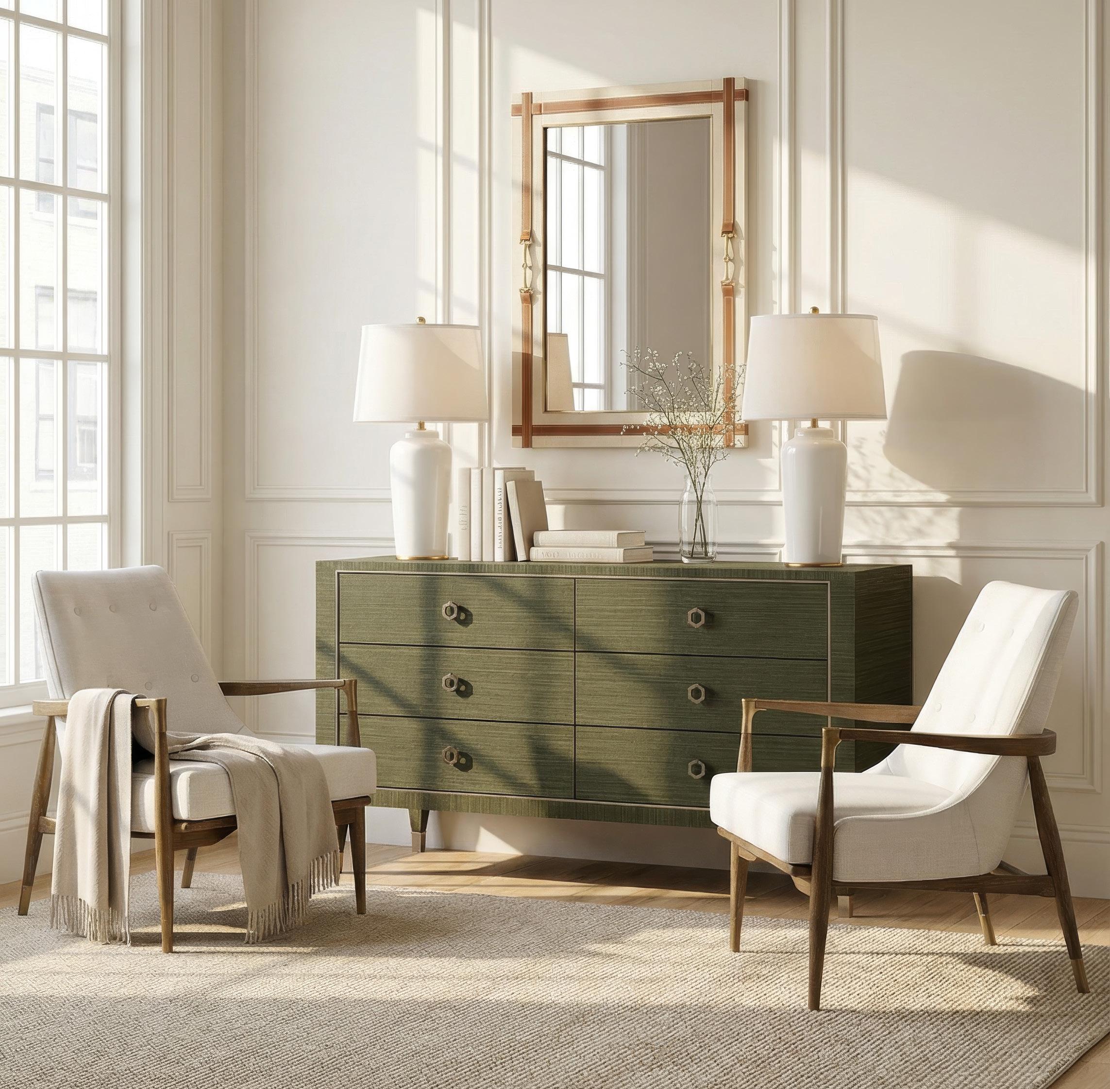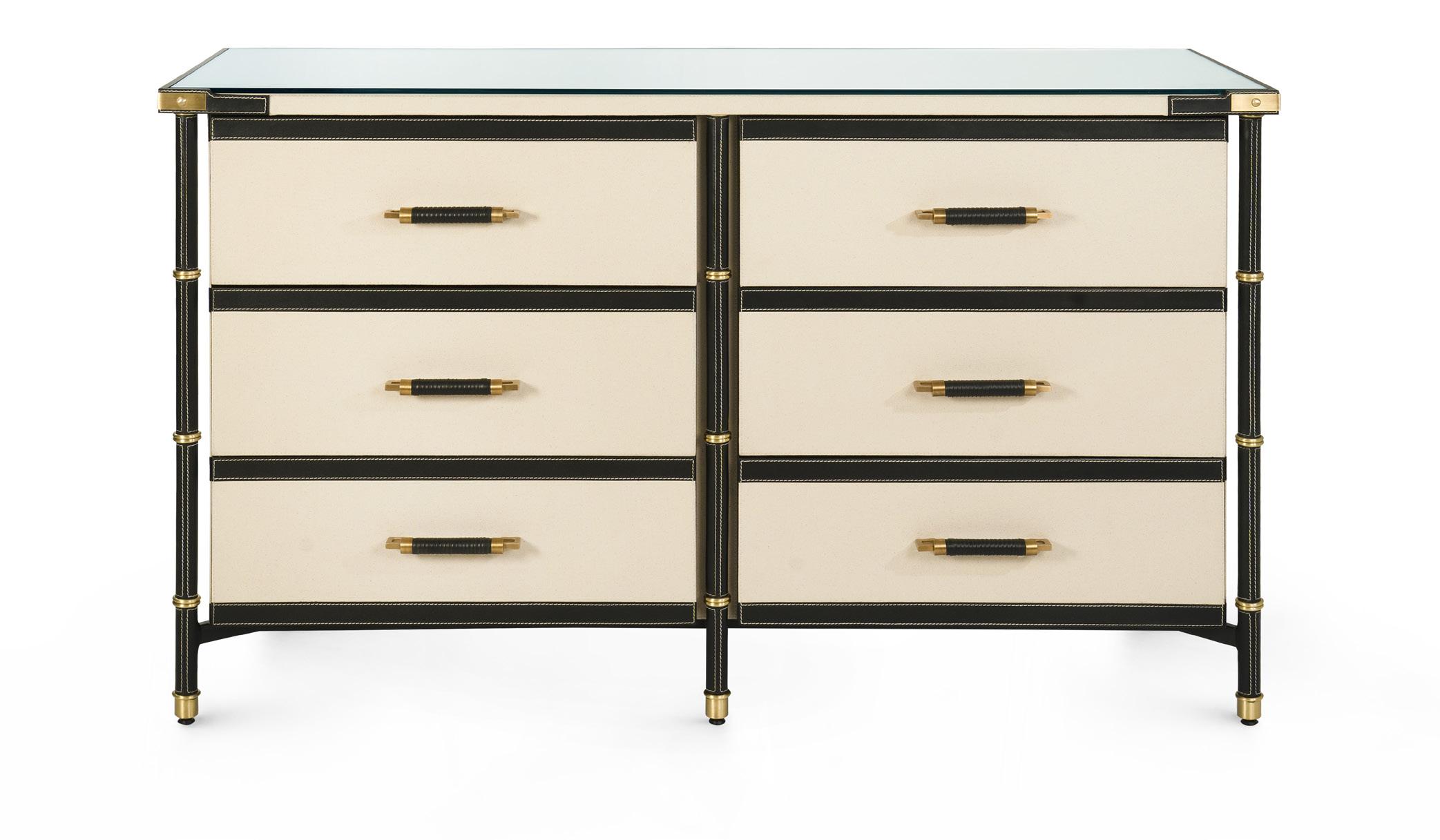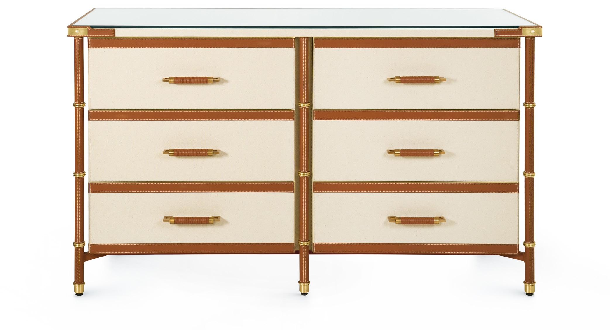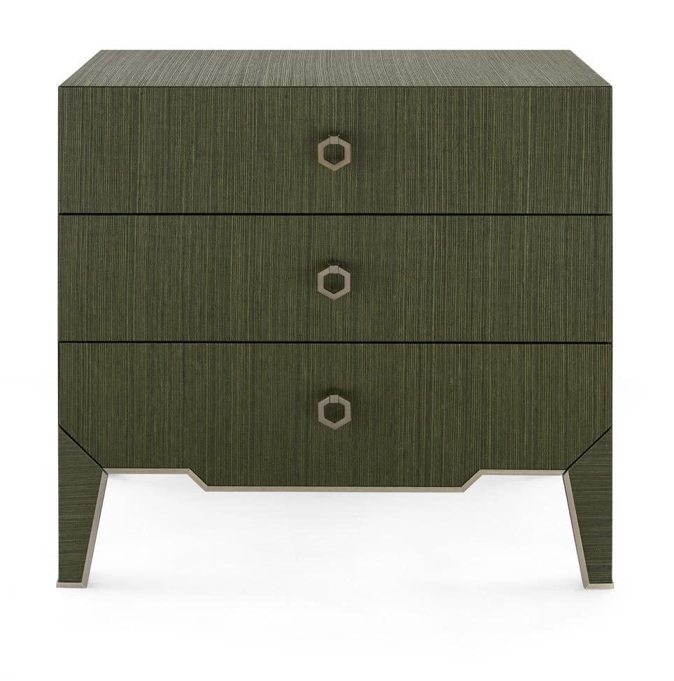 MORRIS EXTRA LARGE 6-DRAWER DEEP OLIVE, CLEAR LACQUERED GRASSCLOTH, SATIN BRONZE FINISHED CAST METAL, MRS-250-5137-894
