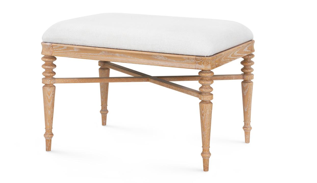 The Lawrence Collection draws from classic European forms, defined by confident proportions and meticulous carving. A cerused oak finish, sealed in clear lacquer, reveals the wood’s nuanced grain, while hand-carved legs add an artisanal touch. Plush, generously padded seating in richly textured upholstery completes its composed silhouette. Crafted from oak and veneers, the collection includes a side chair, stool, and bench offering a cohesive approach to seating rooted in timeless design.