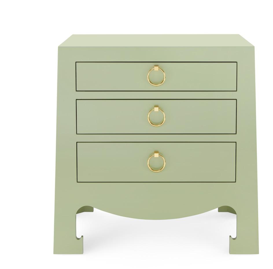 HERITAGE SPRING GREEN, PIGMENTED LACQUERED WOOD AND VENEERS, POLISHED BRASS FINISHED CAST METAL JOR-350-097