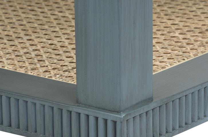 DRIFTWOOD, CLEAR LACQUERED CERUSED OAK WOOD AND VENEERS, NATURAL CANE, ANTIQUE FINISHED CAST BRASS
