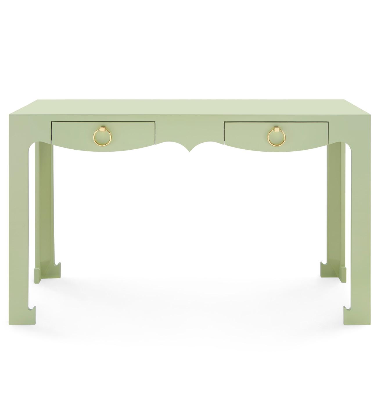 HERITAGE SPRING GREEN, PIGMENTED LACQUERED WOOD AND VENEERS, POLISHED BRASS FINISHED CAST METAL