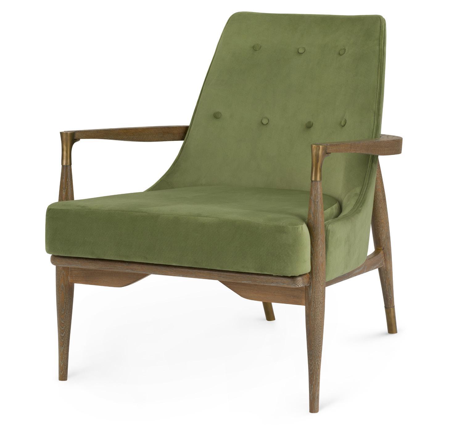 LACQUERED CERUSED OAK WOOD AND VENEERS, VELVET ENGINEERED FABRIC, ANTIQUE FINISHED CAST BRASS