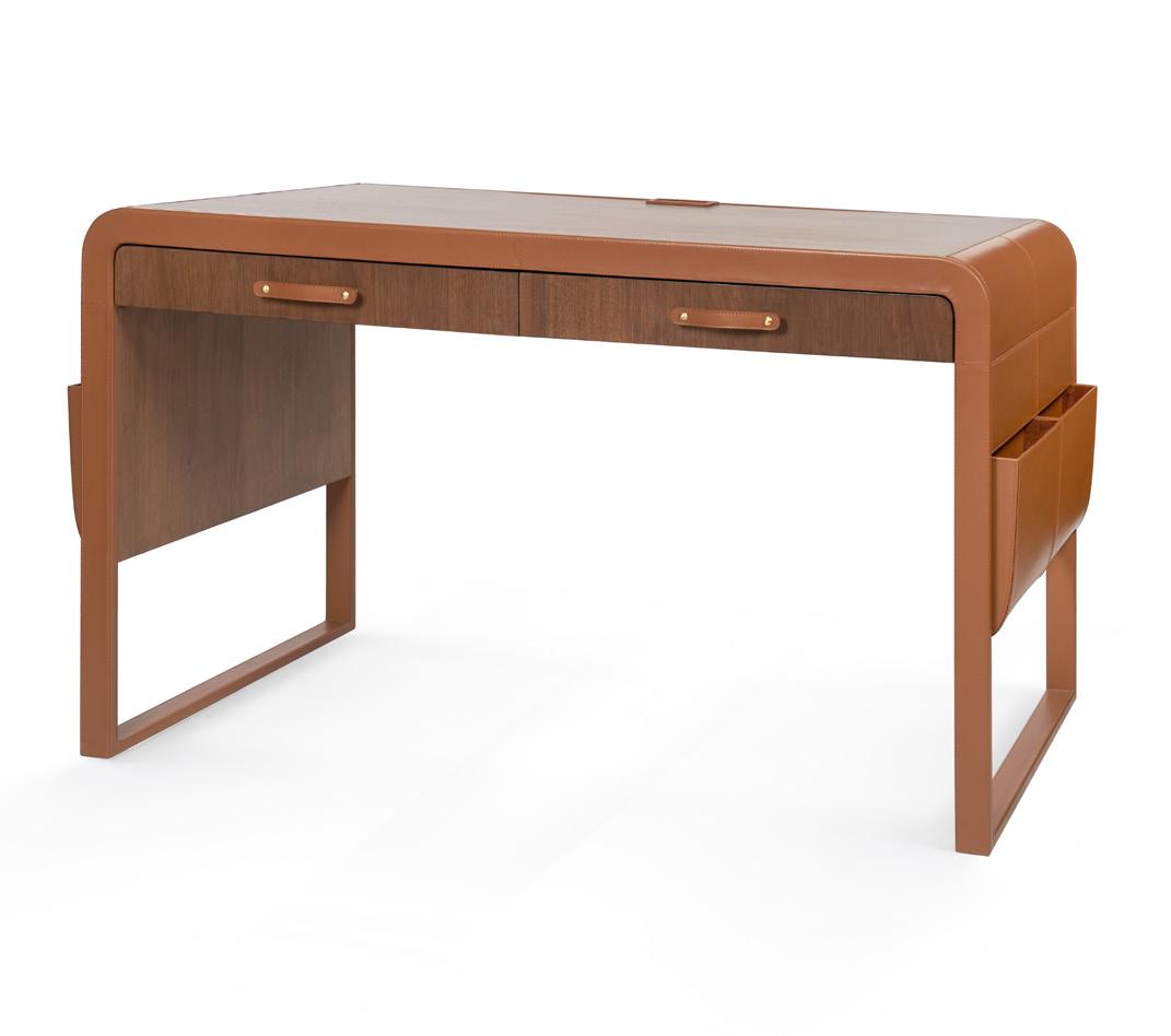BURL, CLEAR LACQUERED WOOD AND VENEERS WITH BRUSHED BRASS SABOTS