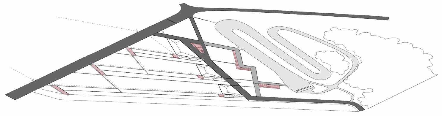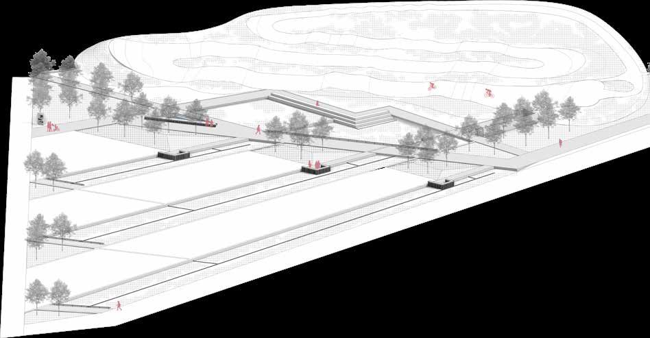 Considering the use by cyclists, I selected this galvanized grating deck for the trackside access, It's high friction surface will allow bicycles to pass safely. This material will also reduce the impact of the hard paving on the site's permeability and create shade for wildlife.
