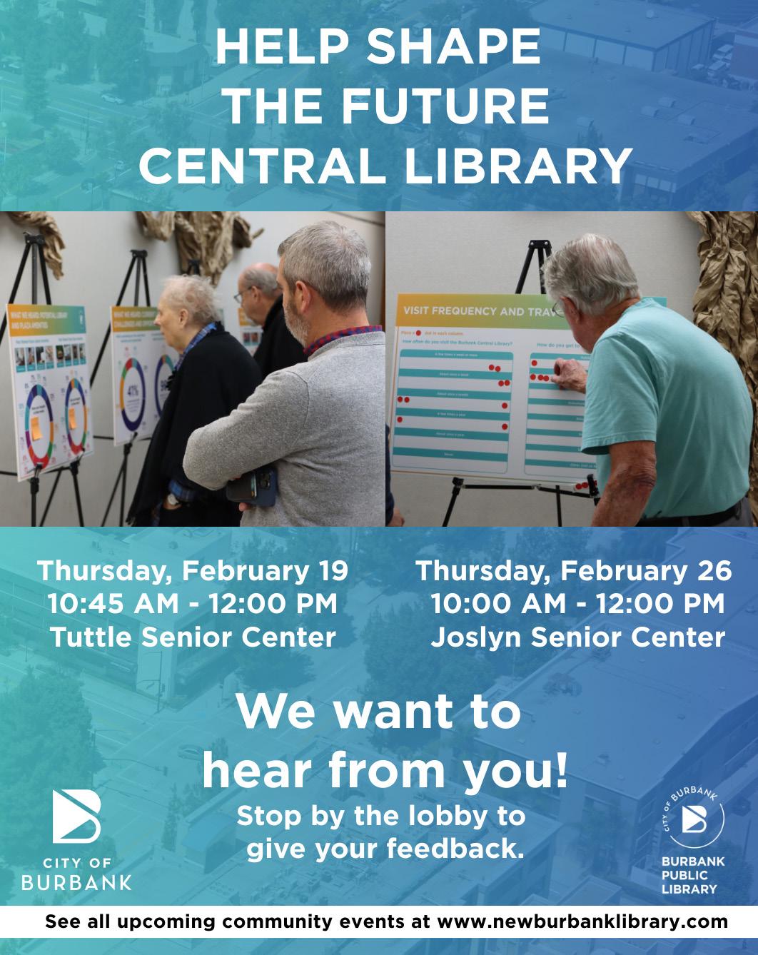 For the most up-to-date information on classes, events, and our monthly presentations, please visit Joslyn and Tuttle or check out our website: www.burbankca.gov/adults55