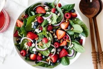 To Assemble the Salad: Add the greens, cheese, nuts, berries & seeds