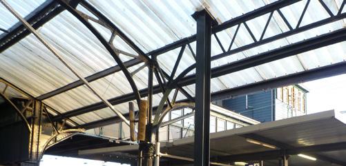 de stalen delen van de perronoverkappingen in deze kleur te schilderen. De houten ramen zijn vernieuwd en opnieuw van raamroeden voorzien, die een okerkleur kregen.