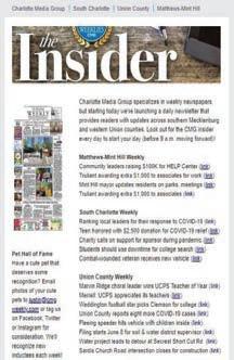 • Facebook, Twitter and Instagram: @mmhweekly. @ucweekly, @southcltweekly, @weekly waxhaw and @itncweekly