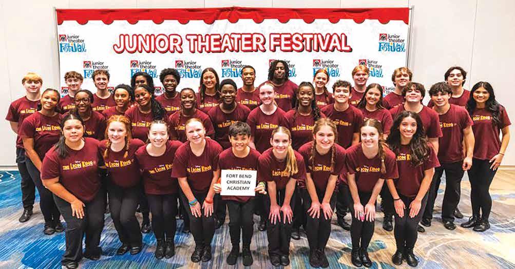 the iTheatrics Junior Theater Festival Legacy Award. Fort Bend Christian Academy, a Pre-K-12 private institution based in Sugar Land, presented Disney's The Lion King JR. to Jeff Hall, Senior Program Director, Disney Live Entertainment; Board Member, Educational Theatre Association; and Nina Meehan, director and playwright. The group was named an All-Festival Performance Group and received the Excellence in Pod Award. Chase Harris and Asher Oliu were named Junior Theater Festival All-Stars, a select group of outstanding performers. Grace Baird, Harper Brown, Kelcy Nguyen, and Trinity Simpson made it to the call-back to a yet-tobe announced special project promoting musical theater in schools. Joellie Cadiz, Gabby Anthony, Trinity Simpson, and Joanna Anthony earned an award for Outstanding Student Direction & Choreography; and Gabby Anthony earned an award for Outstanding Individual Performance.