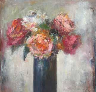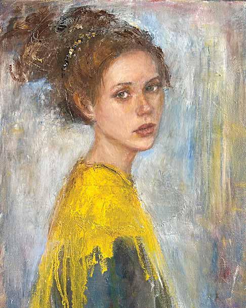 I’m a fan of her style of “abstracted” painting, with visible brush strokes. The portraits have complementary subtle background colors that are textured in appearance with scratches, stains and reminiscent of centuries-old paintings. Her florals, landscapes and even abstract paintings seem to tell a story, yet something may be missing, allowing the viewer’s eye to finish what is missing.