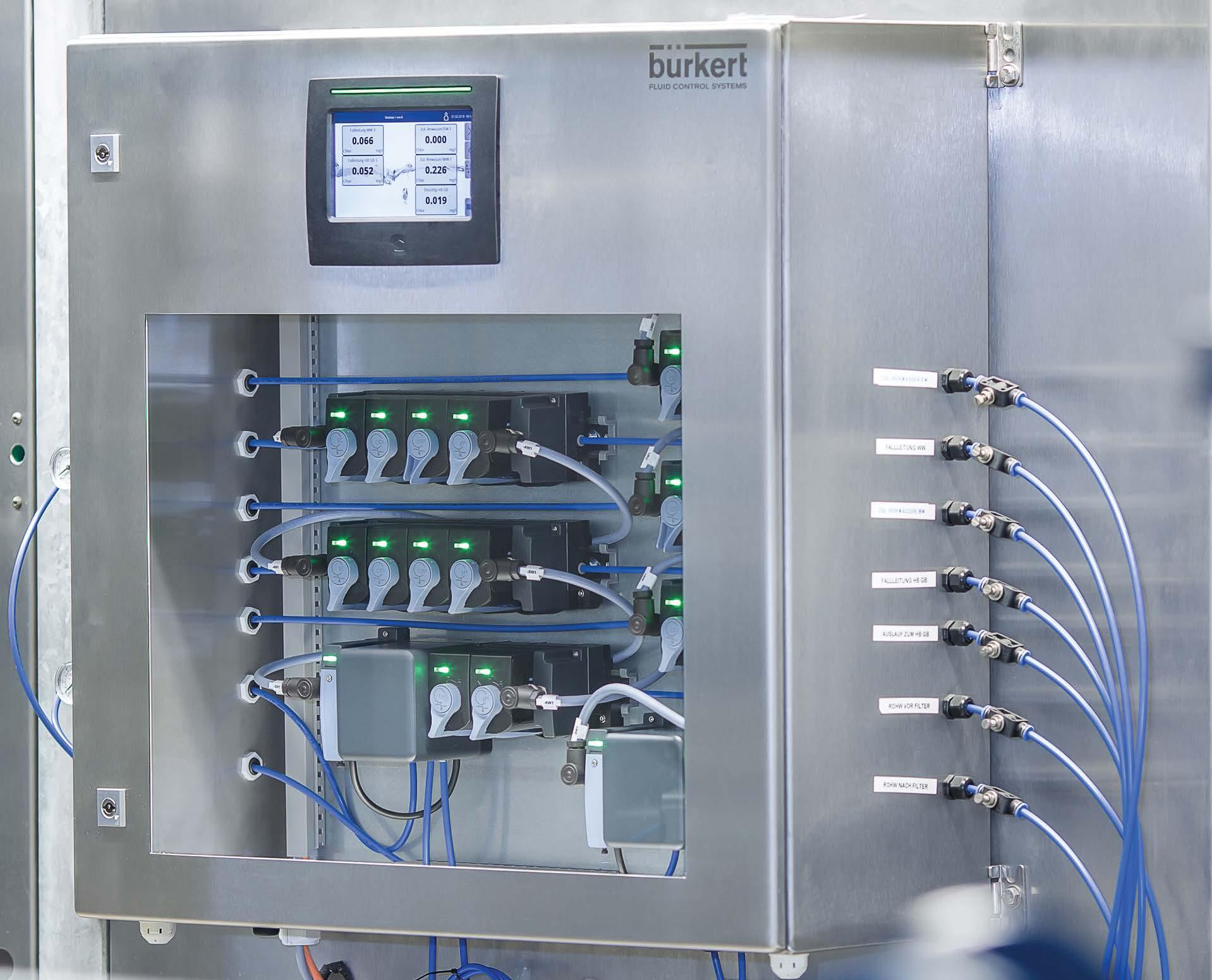 Monitoring and analysing water online // Burkert’s Online Analysis System Type 8905 provides you with a space-saving and safe solution. It allows you to monitor all key water parameters with just one system – continuously, precisely and with low maintenance.
