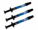 Burkhart Premium Flowable Composite is a light-cured, nano-filled flowable composite available in both high-and low-flow varieties for all clinical needs. The 3 adaptive shades blend easily to a patient’s existing tooth color. 80mm spherical fillers offer high shade-matching, glossiness, and wear resistance. High compressive and flexural strength provides universal indications. Pairs with Pre-bent 20GA and 22GA Tips Opaque Black. (pg. 45).